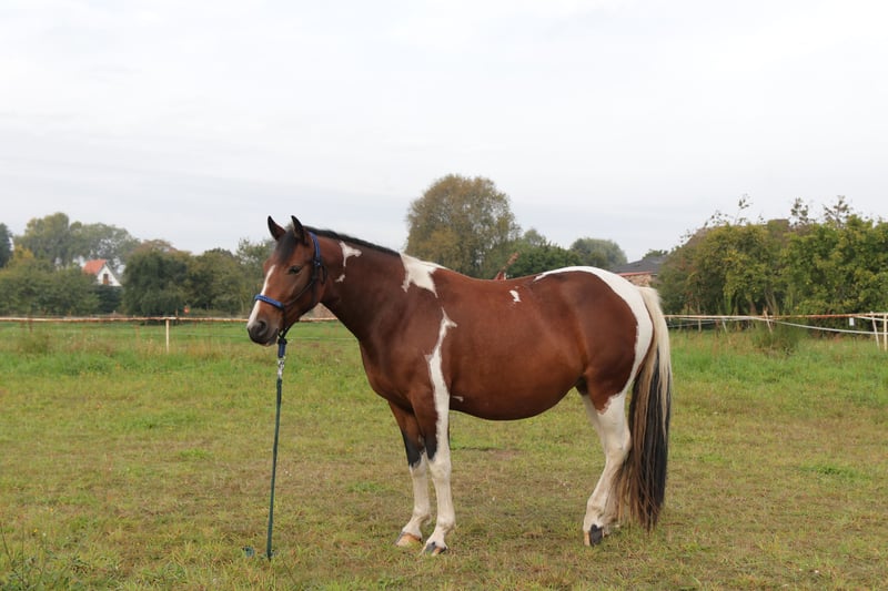 For sale is our beautiful Paint Horse mix mare Nayeli Sun Dream. Nayeli was born on June 2, 2015, is approximately 1.52 m tall, and has a medium build. She is very uncomplicated to handle. She has a green passport. Nayeli has produced several beautiful foals with us, almost all of them colorful. She is an excellent mother. In terms of character, she is cool and very sweet. She loves children. She is familiar with saddle and bridle, and has been lunged. She is also accustomed to rider weight, but the last time a rider was on her was a few years ago. She is not a beginner's horse. She is also familiar with tractors, dogs, and cyclists. She has been out in the field as a lead horse. She will only be sold into the very best hands. For further questions, feel free to call 0174 2490523. Location: Usedom Island Price: €3999 negotiable.