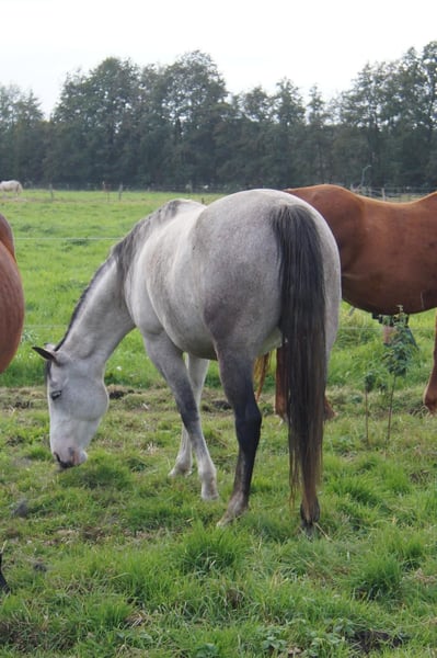 NW Beautiful Jazzgun - wunderschöne, graue Paint Horse Stute mit kräftigem Fundament und korrektem, geradem Beinen. Sie überzeugt durch ihre tolle Farbe und einen ausdrucksstarken, harmonischen Körperbau - ein echter Hingucker! Die Stute stammt aus bewährter, guter Reining/Cutting-Abstammung und ist NRHA einbezahlt. Sie wurde bislang aufgrund von Zeitmangel noch nicht angeritten und ist somit unverbraucht. Aufgrund eines Chips vorne rechts, der als Zufallsbefund bei einer AKU rauskam, wird sie als reitbare Zuchtstute abgegeben - sie zeigt keinerlei Lahmheiten oder Einschränkungen. Jazz ist 2019 geboren und hat ein Stockmaß von 150 cm. Sie besitzt einen ganz lieben Charakter, ist menschenbezogen, verschmust und immer händelbar. Ganz brav im Umgang. Jazz steht im Offenstall und ist herdentauglich. Sie ist 5-Panel n/n. Kennt Bodenarbeit und longieren. Jazz hat eine gute, alte Reining/Cutting Abstammung. Ihr Vater, JBars Cromed Gun ist ein Sohn vom Superior Open-Honor Roll Champion Gunners Crome Gun. Ihre Mutter ist eine proven Zuchtstute von Mister Dual Spring - IRCHA Open Cowhorse Futurity Champion, mutiple Open Bronze Trophy Champion or Reserve Bronze Trophy Champion, Producer of mutiple NRHA of Germany Open Breeders Futurity Finalists and NRHA of France Open Derby Champion.