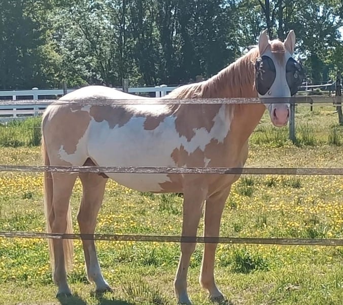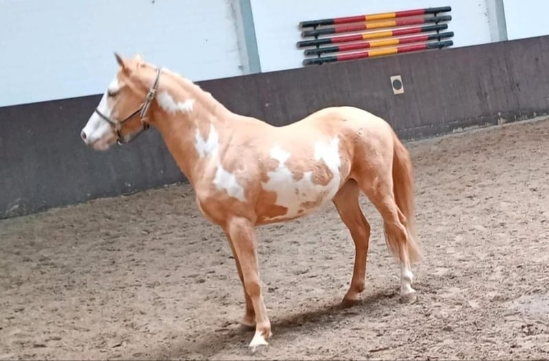Lakota ist ein Paint Horse in der selten schönen Farbe Palomino Paint Overo. Er ist 4 Jahre alt und besitzt einen Pferdepass und ist gechipt, Er hat ein Stockmaß von ca.1,57m. Er kennt das Fohlen ABC und ist ein paar mal geritten wurden wo er sich brav und sehe lernwillig zeigt. Lakota ist barhuf und beim Hufschmied steht er auch brav. Er steht bei uns in Offenstallhaltung und ist da Rang niedrige. Wenn Sie Fragen haben oder Lakota besichtigt möchten rufen sie bitte an. Telefonnummer: 0162 4661726