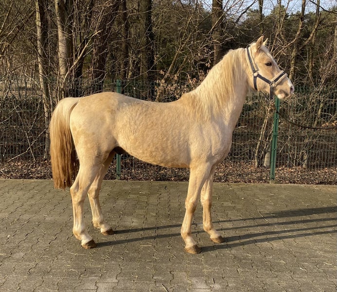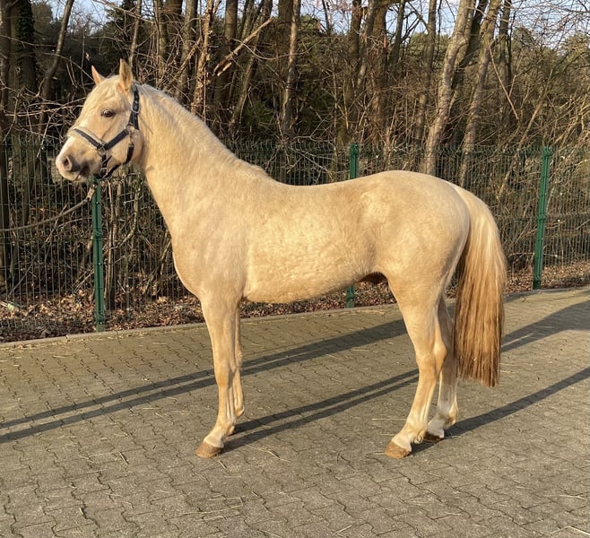 Traumhaft schöner jetzt 3-jähriger Ponyhengst in der besonderen Farbe Fuchsisabell (Palomino) Brav im Umgang, roh und derzeit 1,40m groß. Er ist in einer Herde im Laufstall/Weide groß geworden und seit kurzem in Stall reingeholt worden. Abstammung: Dreidimensional I AT NRW x The Breas My Mobility