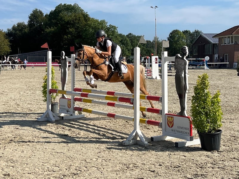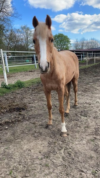 We are selling our loving and reliable pony mare Sunny due to a change of rider. Key data: - Name: Sunny - Breed: German Riding Pony - Gender: Mare - Height: 1.43 m - Age: 18 years (born on 12.06.2006) - Color: Palomino - Training level: A - Placings: E About Sunny: Sunny is a real all-round talent with competition experience. She is currently being ridden at E level in dressage and at E level in show jumping, but has potential for A level show jumping. She has recently placed several times at competitions and always shows her willingness to perform. Sunny is a pony that harmonizes best with an experienced and sensitive rider. She is willing to work, reliable and very versatile with the right leadership. She is ideal for ambitious riders who are looking for a pony with which they can progress and enjoy competing. Miscellaneous: Sunny will only be given into loving hands that can offer her a species-appropriate attitude, sufficient exercise and a trusting partnership. Because Sunny had a few teeth extracted about a year ago, she needs additional feed.