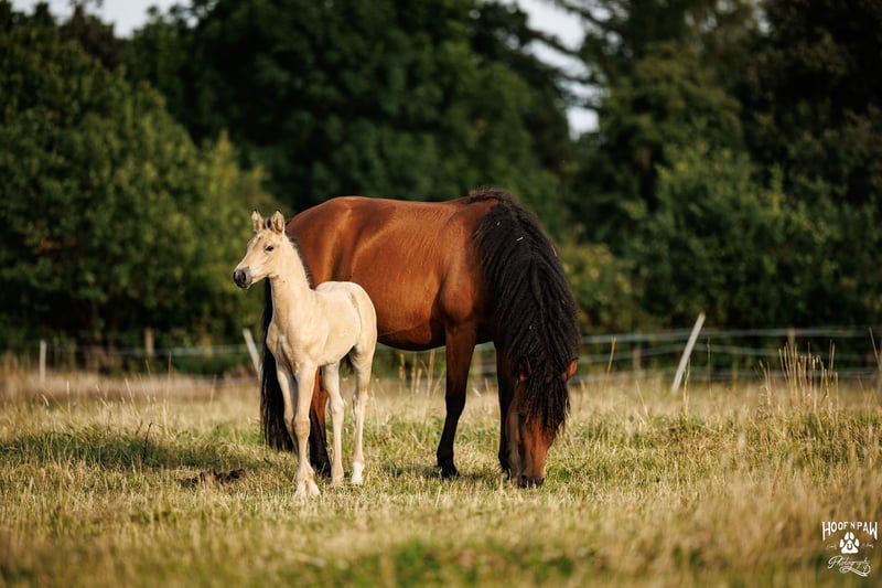 Deze opvallend mooie buckskin-jongmerrie, geboren in juni 2025, is de zus van onze uitzonderlijke palomino-merrie en komt qua uitstraling, aanwezigheid en beweging niet onder. Ze overtuigt met haar sterke uitstraling, een oplettend, helder hoofd en een zeer harmonieus totaalbeeld – een zelfverzekerde klein meisje met veel charme. In beweging toont ze zich getrapt, vurig en correct. Haar gangwerk is harmonieus en goed uitgebalanceerd, wat erkend en beloond werd door de fokvereniging. Dankzij haar afstamming en het aanwezige crem-Gen is ze voorzien van palomino-papieren. Wat vooral opvalt, is haar innerlijk: attent, moedig en cooperatief, met een snel inzicht en een positieve werkhouding. Ze neemt nieuwe situaties geïnteresseerd op, blijft daarbij helder in haar hoofd en is goed te reguleren – eigenschappen die haar tot een aangename en betrouwbare partner onder de ruiter maken. Ze komt uit een beproefde foklijn: haar moeder is een curly horse merrie. Ze combineert stressbestendigheid en leergierigheid. Haar vader, Sölrings Cuvée, gekeurd prestatiestamboekhengst en rassesieger, brengt type, harmonie, goede basisgangen en een evenwichtig karakter mee – kwaliteiten die hij doorgeeft aan zijn nakomelingen. Met een geschat eindhoogte van ongeveer 1,57 m (16.1 hh) beschikt ze over uitstekende voorwaarden voor veelzijdig gebruik. Ze is geschikt voor zowel de fokkerij, ambitieuze recreatieruiters als voor een betrouwbaar gezelschapspaard. Ook als toekomstig therapiepaard kunnen wij haar ons zeer goed voorstellen. Ze groeit op in een kudde met moeder, verwanten en andere jonge paarden, en heeft zich al vroeg ontwikkeld tot een sociaal stabiel paard. Ze beweegt zich zelfverzekerd in de groep, is respectvol en duidelijk in haar communicatie – een belangrijke basis voor mentale stabiliteit. In de omgang met mensen toont ze zich mensgericht, makkelijk in de omgang en leergierig. Ze doet graag mee, zoekt contact en wil mensen graag behagen. Deze mix van karaktersterkte, innerlijke rust en motivatie belooft een zeer aangename rijbaarheid. Deze buckskin-lady combineert correcte beweging, fokkwaliteiten en een sterk innerlijk. Een harmonieus jong paard met perspectief voor mensen die waarde hechten aan karakter en een eerlijk, meedenkend paard.