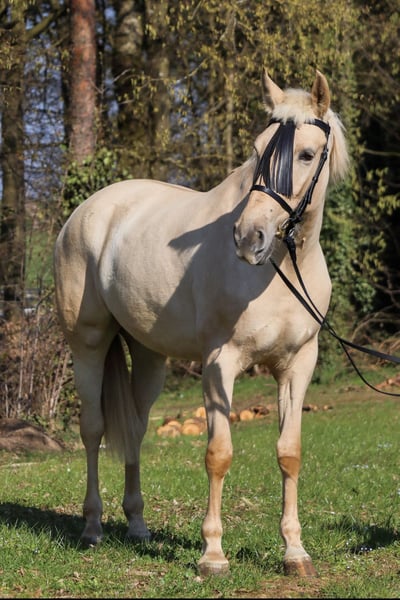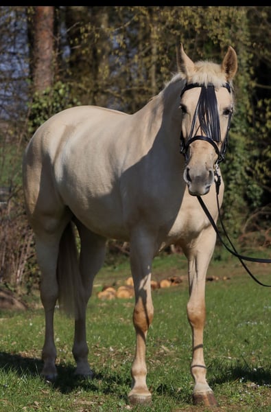 Verkaufe eine elegante Palomino-Stute, geboren im Jahr 2021, mit einem Stockmaß von 162 cm. Diese beeindruckende Pferd ist ideal für die Working Equitation und überzeugt durch ihre Vielseitigkeit sowie ihre ausgeglichene, gut gerittene Art. Die Stute besticht durch ihre Erscheinung, sie hat eine enorme Präsenz. Sie ist freundlich im Umgang, aufmerksam und zeigt großes Potenzial in der Arbeit unter dem Sattel. Dank ihrer soliden Grundausbildung ist sie sowohl für erfahrene Reiter als auch für ambitionierte Einsteiger geeignet, die sich im Bereich Working Equitation weiterentwickeln möchten. Sie beherrscht bereits das Kompliment, das ablegen. Absolut leichtrittig, geländesicher, alleine als auch in der Gruppe. Ihr ausgeprägtes Bewegungstalent, kombiniert mit ihrer Lernbereitschaft, macht sie zu einem vielversprechenden Partner für alle, die Spaß an der Vielseitigkeit und an anspruchsvoller Arbeit mit dem Pferd haben. Bei Interesse oder weiteren Fragen stehe ich gerne für Auskünfte und eine Besichtigung zur Verfügung. AKU und Röntgen vor Ort möglich. Bei Interesse gerne Videos und weitere Bilder der Stute. Aktuell ist sie viermal beschlagen. Schmiede und Verladefromm.