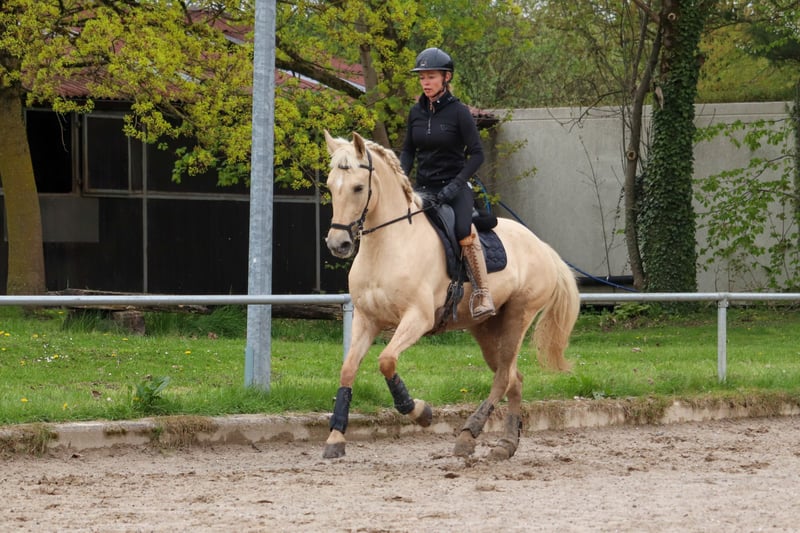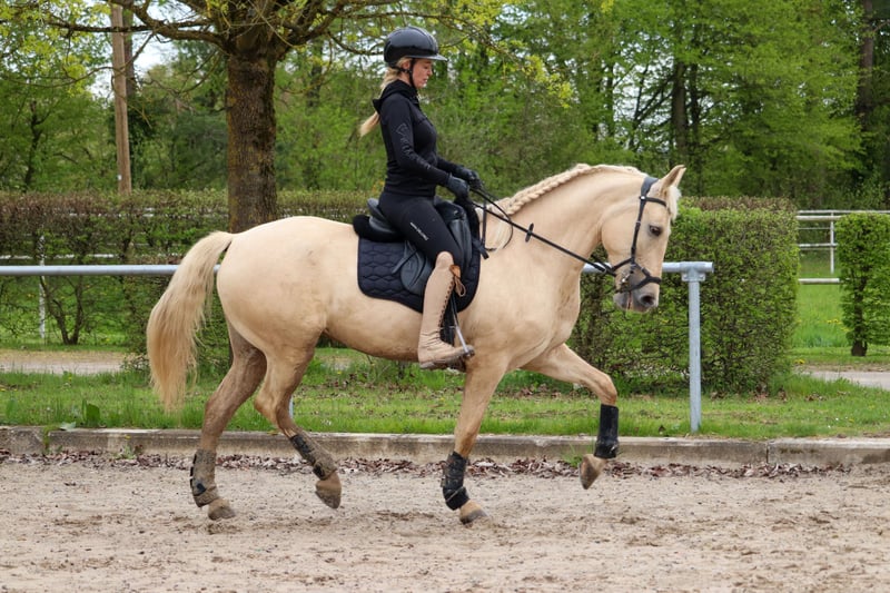 Verkoop een elegante Palomino merrie, geboren in 2021, met een stokmaat van 1,62 m. Dit indrukwekkende paard is ideaal voor working equitation en overtuigt door haar veelzijdigheid, evenals haar evenwichtige en goed bereden karakter. De merrie springt in het oog door haar uitstraling en heeft een enorme presence. Ze is vriendelijk in de omgang, alert en toont groot potentieel in de arbeid onder het zadel. Dankzij haar degelijke basisopleiding is ze geschikt voor zowel ervaren ruiters als ambitieuze beginners die zich willen ontwikkelen in working equitation. Ze beheerst al het compliment, het afleggen. Absoluut lichtvoetig, terreinveilig, zowel solo als in een groep. Haar uitgesproken beweeglijkheid, gecombineerd met haar leergierigheid, maken haar tot een veelbelovende partner voor iedereen die plezier haalt uit veelzijdigheid en uitdagend paardwerk. Bij interesse of voor verdere vragen ben ik graag bereikbaar voor informatie en een bezichtiging. AKU en röntgenonderzoek mogelijk ter plaatse. Bij interesse stuur ik graag video's en meer foto's van de merrie. Ze is momenteel vier keer beslagen. Voorzien van hoefsmid en loading comfort.