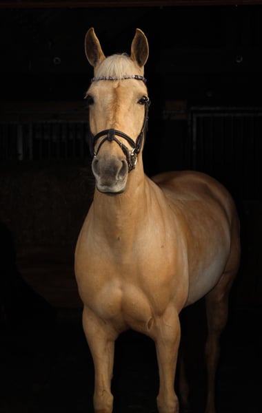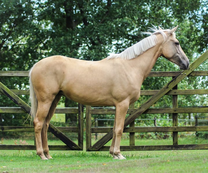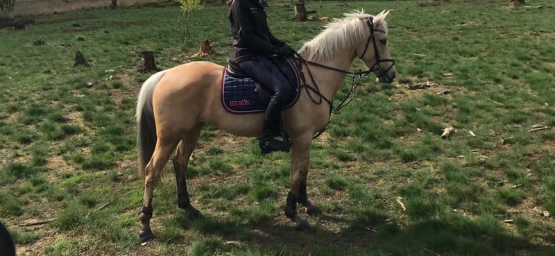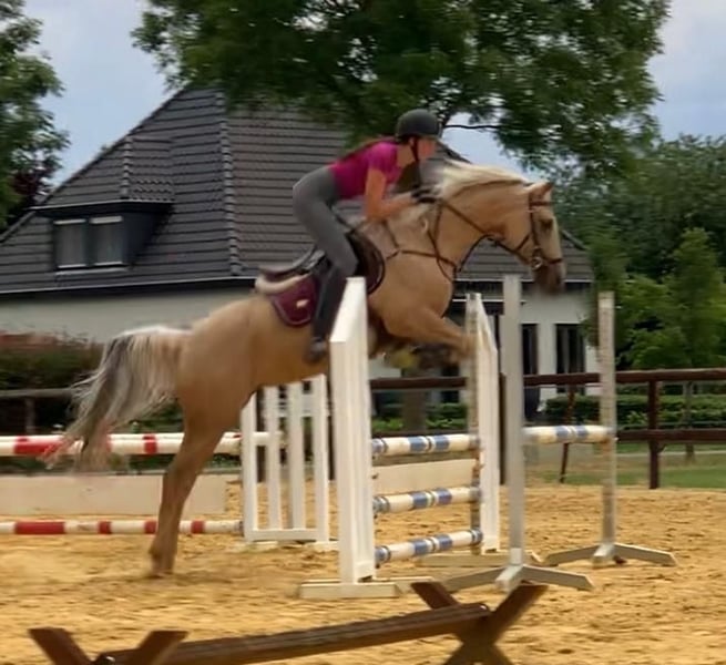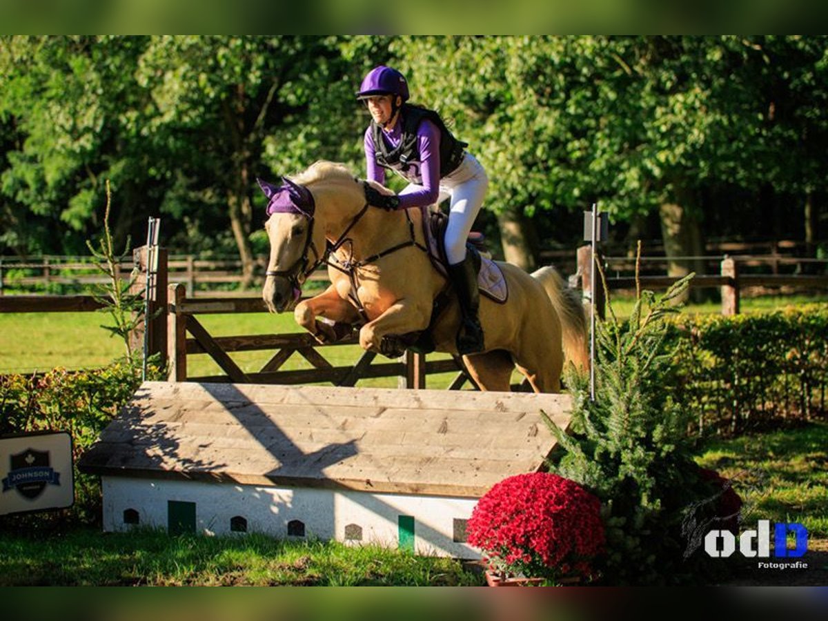 Pony de palomino para concurso completo y salto de obstáculos, categoría 100-110, con carácter dorad