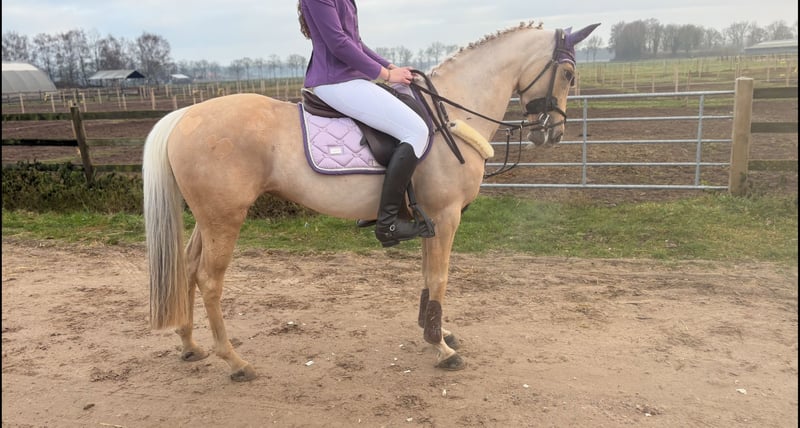 Miss Goldberg is te koop. Ze is als drie jarige pony hier gekomen en mijn dochter heeft haar getraind. Mijn dochter gaat een internationale studie volgen en daarom bieden we onze lieve Miss Goldberg te koop aan. . Door Miss Goldberg is mijn dochter springen en eventing heel leuk gaan vinden. Miss Goldberg weigert nooit, ze denkt mee en helpt haar ruiter in het parcours en in de cross. Op de poetsplaats is ze super braaf. Ze staat uren lang keurig stil, zodat een klein kind haar kan borstelen en verzorgen. Ze blijft netjes staan tijdens het wassen, scheren en bij de hoefsmid. Miss Goldberg staat in het seizoen van de eventingwedstrijden op vier ijzers. Nu heeft ze alleen voor ijzers. Miss Goldberg loopt zelf de trailer op en is rustig op wedstrijd. Miss Goldberg heeft veel pony wedstrijden gelopen. Nu wordt ze al meerdere jaren tussen de paarden uitgebracht. Miss Goldberg heeft een fijne grote galop. Moeiteloos past ze zich aan in de driesprong en dubbelsprong. Miss Goldberg is een D-pony met een stok maat van 1,488 m. Miss Goldberg is L-dressuur en kent de zijgangen van de hogere klassen. Miss Goldberg springt 100 110 cm bij de paarden. Miss Goldberg rijdt B klasse eventing bij de paarden en dit is de L-M hoogte bij de pony's. Het is een zeer betrouwbare pony. Ze is erg makkelijk in de omgang en altijd erg lief. Tijdens het rijden is ze lekker voorwaarts en gehoorzaam. Ze is ijverig in de springarena en laat haar ruiter nooit in de steek. Ze blijft naar voren gaan bij alle eventing hindernissen. Ze is snel, lenig, heeft veel power en kan kort draaien. Kortom alles wat een sportpony nodig heeft om te winnen in de wedstrijdring. Miss Goldberg is een intelligente pony die direct hard aan het werk gaat als ze wordt gereden. In de kudde is ze vriendelijk en een leider. Ze trekt haar eigen plan en de andere pony's zijn graag bij haar in de buurt. Miss Goldberg heeft een gouden karakter en winnaarsmentaliteit.. Miss Goldberg is kerngezond. Ze wordt 4-6 keer per week gereden en ze blijft fanatiek meewerken. Op wedstrijden doet ze extra haar best. Als drie jarige pony is Miss Goldberg klinisch gekeurd. Alle keuringen zijn toegestaan, mits kosten koper. We zoeken voor Miss Goldberg een gedreven ruiter. Een stal met veel bewegingsmogelijkheden voor de pony vinden we ook belangrijk. We hebben heel veel filmpjes van Miss Goldberg. Heeft u meer zien? Dan sturen we u alle filmpjes door. Er is een YouTube kanaal van Miss Goldberg zie Google browser www.youtube.com/@annettehorses3700 U kunt Miss Goldberg ook bekijken op Instagram via account simmerstal2 . U kunt Miss Goldberg komen bewonderen en rijden als u echte interesse heeft. Bel 0031 6 30960037 voor een afspraak.