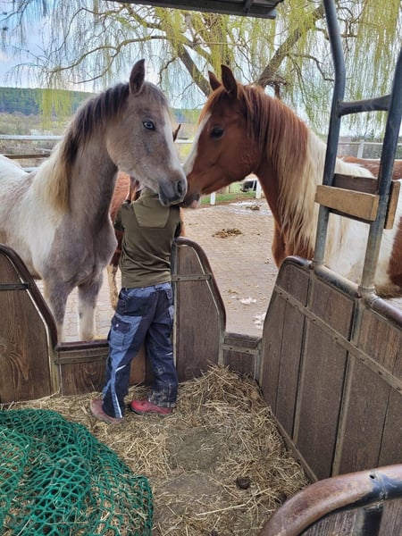 🩵 3, 2, 1.. deins? 🩵 🦄 AMB Ph'eromon 🦄 , geboren am 01.06.2023. Er ist ein Sohn unseres Deckhengstes Colorful Phun Unlimited aus Sabryna el Yllan. Sein Vater Colorful Phun Unlimited "Marley" wurde von Claudia Kaul, Gestüt Most Colorful in Deutschland gezüchtet und ist Körungsreservesieger bzw. Hengstleistungsprüfungssieger beim ÖAZV, seine Mutter Sabryna wurde vom Vollblutarabergestüt La Movida aus Brasilien importiert und ist eine Tochter des bekannten Yllan el Jamaal. „Blaze“ ist sehr langbeinig, hat eine tolle Oberlinie und riesige Augen. Weiters ist er heterozygot tobiano und selbstverständlich SCID, CA und LFS frei. Er hat einen Araberanteil von 99,6%. Er liebt es, lange Spaziergänge zu machen, kennt Kinder, Traktoren, Hühner, Esel und anderes Getier und lässt sich nicht so leicht aus der Ruhe bringen. Neu: Hier ein Beitrag/Video, welches ihn auch ganz gut beschreibt. 🥰 https://www.facebook.com/share/v/1AUty2V2pe/?mibextid=wwXIfr Weitere Fotos und Videos gibt es auch auf Facebook auf meinem Account "Andrea Bernsteiner" bzw. beantworte ich sämtliche Fragen gerne via Whatsapp, Facebook, E-Mail oder auch telefonisch. Hard facts: AMB Ph‘eromon, Wallach Colorful Phun Unlimited x Sabryna el Yllan Pintabianhengst, 99,06% VA Anteil Fuchsschecke heterozygot Erwartetes Endstockmaß: ~ 1,54m Beitrag darf gerne geteilt werden 🤗