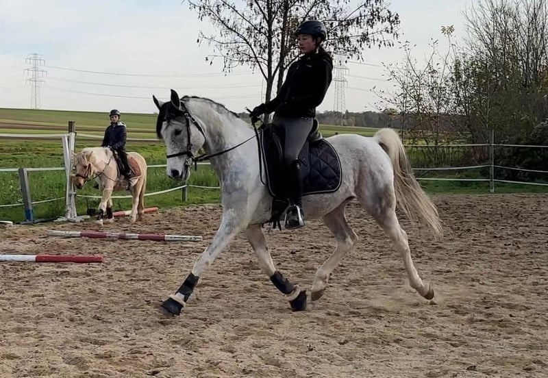 💫 Unique Opportunity 💫 Only if the fit is right, my Caiylani el Zahra will move to a new home — this is definitely not an urgent sale. Caiylani el Zahra Pintabian, 99.22% Porzellanschecke Height: 1.55 m (15.1 hh) Free of CA, SCID & LFS Licensed: ÖAZV, ZFDP, ÖZP & ZSSE HLP Sieger 2021 Stadl-Paura No known health issues Pre-purchase exam available at any time I have spent many years trying to find the right rider for him, someone who can support him in sport and development. Unfortunately, it has never quite worked out. I am a leisure rider myself and cannot fully develop him according to his potential. Since he is just standing around with me, I want to find him a suitable home. Even offering him as a “for use” horse could be an option, provided the conditions are right. Caiylani is an incredibly sweet and well-behaved stallion. Only competition atmosphere stresses him very much, and he would need an experienced handler to help him get accustomed to it. He has been ridden in videos by two children (13 and 18 years old) and, as mentioned, is completely trouble-free. Thanks to his excellent shoulder freedom and natural collection ability, he embodies the ideal Arabian dressage horse. I also see great potential for him in Working Equitation. We have taken him on cross-country courses, and he also shows talent in jumping. He has a big heart and, with a rider he trusts, will go through fire and back. I would also consider selling him as a gelding. The future owner must agree that I can continue to use his training and riding gear for life. I personally bred my stallion. In 2021, he won the HLP in Stadl-Paura with a score of 8.27 and is licensed four times. Recognized for Trakehner breeding and sport pony breeding… I am very proud of him. His outstanding qualities have been proven multiple times and highly praised by those assessing him based on his riding horse points. He covers mares freely on pasture and could run with them year-round. He is very gentle with them. His foals consistently display his Arabian flair, above-average gaits, and correctness. All are very intelligent and affectionate. So far, every one of his offspring has brought great joy. I currently have two at my stable. If you want to give my Caiylani the perfect home, please contact me. A no-obligation meeting is always possible. I am making this decision not based on my heart but purely in the best interest of the horse. We look forward to hearing from you.