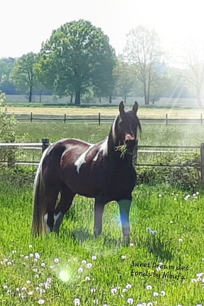 Pintabian 99,7 % ox 01.04.2020 1,53m Stock Heterzygot Tobiano Gekört beim VZAP Geritten, umgänglich, deckt an der Hand 4 Fohlen 3x Stute 3x Tobiano Bei einem passenden Zuhause würden wir uns von unserem Traumhengst trennen.