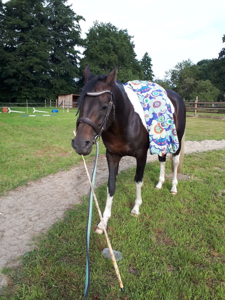💕 Sweat Dream des Fonds 💕 😍😍😍😍😍😍😍😍😍😍😍 Pintabian hengst 99,7% ox Geboren op 1 april 2020 Bruin Tobiano heterozygoot 1,53 m schofthoogte Van HAB Dreamdancer zwart-wit Tobiano Uit Khadra des Fonds, Vollblutarabier, bruin ❤❤❤❤❤❤❤❤❤❤❤ Mr. D zoekt een nieuwe uitdaging. Onze prachtige hengst zoekt een plek waar hij verwend en gestimuleerd wordt. Hij heeft elke dag beweging nodig, beschikt over veel kracht en een geweldig bewegingsapparaat. Met zo'n hengst ben je altijd in de belangstelling. Hij is in alle drie de gangen gereden en heeft intensieve grondwerktraining genoten. Dekt via natuurlijk dekken. Staat in een open stal, maar kent ook een box, hoewel hij daar niet gelukkig is.