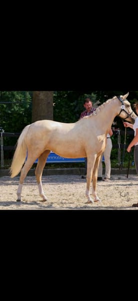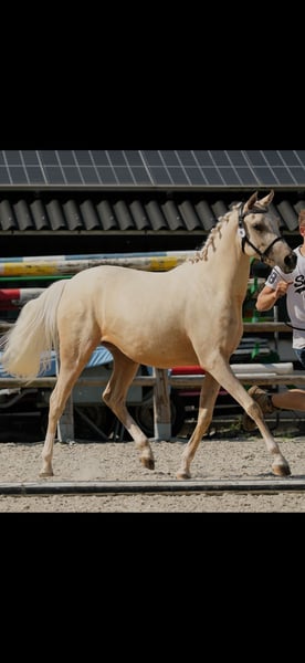 Looking for a 5⭐️🏡 Extremely luxurious palomino part-bred Arabian mare. Breezer is a stunning mare with an incredibly beautiful appearance; at the inspection, everyone was taken with her, especially her lovely head! She received a beautiful first premium. She has no less than 90% Arabian blood and can move fantastically! She is descended from the luxurious part-bred Arabian Fizz Silver Fame x top sire PSYTADEL. A valuable lineage with an incredible number of champions. Breezer is easy to handle and gets along well with all other mares. She is currently 2.5 years old and is expected to reach 1.55m. Negatively tested for: SCID LFS CA HWSD PSSM1 WFFS HYPP Breezer has no (stable) defects. She has always been properly dewormed, vaccinated, and trimmed. For more information, please send a private message. She can possibly stay until she turns 3 for an additional fee and can be trained here. For a video, please message 0611058871.