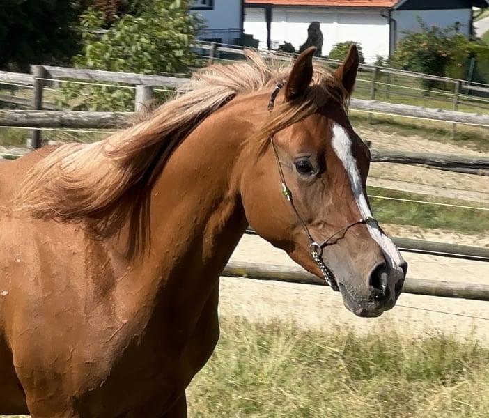 Leyana AB ist ein ganggewaltiges Partbred Stütchen mit bezaubernden Charakter. Und herausragender Nervenstärke. Ihr Vollblutaraberanteil liegt bei 75%. Mutter Lateefa AB ist auch aus unserer Zucht und Prämienstute. Sie ist mehrfach A Dressur mit mir platziert. Lilly Marlen, Holsteiner, Lateefa ABs Mutter, ebenfalls aus meiner Zucht, wurde von mir Springpferde L siegreich geritten. Ihr Vater Lamborghini Boy war ebenfalls in meinem Besitz und bis springen M erfolgreich und S Dressur. Lilly Marlens Mutter Escarda war S springen platziert und doppelte Hengstmutter. Der Vater von Leyana AB, der Vollblutaraberhengst Al Ilaf Thamin, ist mit der Note 8 leistungsgeprüft auf Station und hat auch eine sehr gute Fahrveranlagungsprüfung absolviert. Der Muttervater der Vollblutaraber Hengst FM Shah Nasaa war gekört in D und AUT und doppelt leistungsgeprüft. Mit mir im Distanzsport und auf Station. Sein Vater Nashki war ebenfalls leistungsgeprüft. Leyana AB wächst extensiv im Herdenverband bei uns im Offenstall auf. Durch die verschiedenen Untergründe haben alle unsere Pferde extrem gute Hufe. Im Sommer laufen die Pferde auf 24/7 Wiese hier im niederbayerischen Hügelland. Unsere Pferde sind dadurch sehr gut ausbalanciert, gesund und abgehärtet, Hier geht es zu unserer Web Seite: www.bavaria-pferdesport.de