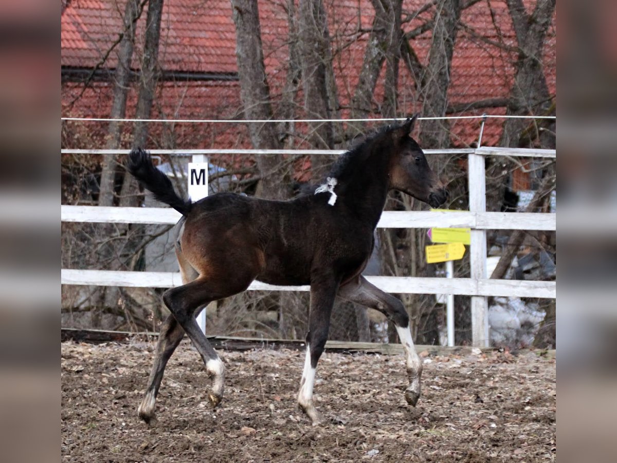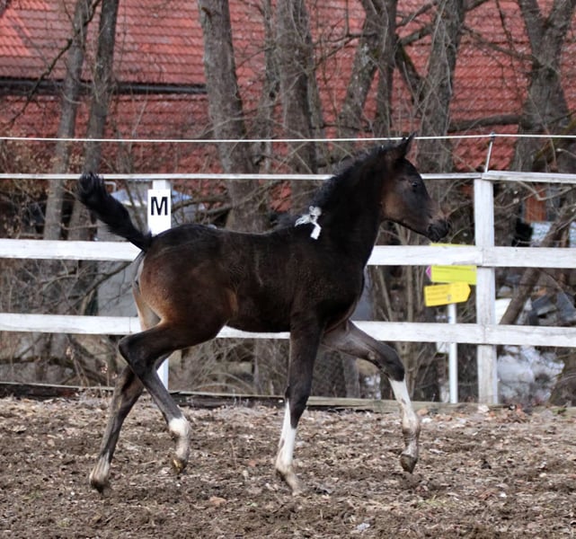 This filly has absolutely everything that makes the hearts of breeders and riders beat faster. Very promising, she is expected to be a confident therapy or family horse later on, as she is completely cool, calm, and personable. She constantly seeks human attention and truly enjoys it 😍 📏 Expected height: approximately 15.5 hands ♀️ Born on January 19, 2026 🌈 Color: black-brown Tobiano 🐴 She is raised in an open stable with other foals – social and robust, with all the qualities that come with it 🦠 Will be regularly dewormed until weaning 💜 Loving, family-oriented upbringing 🌈 Pedigree that speaks for itself: 🩷 Mother: https://www.allbreedpedigree.com/khadeerah A proven broodmare who passes on her calmness and correctness to her foals 💙 Father: https://www.allbreedpedigree.com/limited+design2 Reserving Sieger at licensing and HLP reserve champion He has an excellent character, reliably passes on his temperament, is very personable, and has nerves of steel. 💶 Payment in installments possible