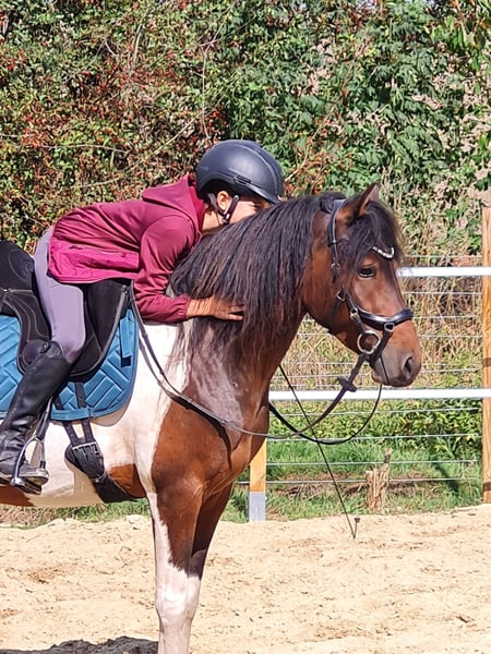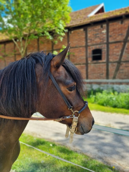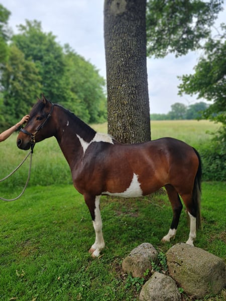 Con gran pesar, vendemos a nuestro Santiago debido a cambios personales. Llegó a nosotros con cinco meses y se unió a su medio hermano. Hemos salido mucho a pasear con él solo en el campo (aquí se muestra extremadamente tranquilo y valiente) y este año lo hemos montado suavemente. En los videos, lo monta nuestra hija de doce años. Santiago se muestra muy tranquilo y motivado, con mucho movimiento. El paso es relajado y tiene un galope bien saltado. Nunca ha estado enfermo con nosotros y ha tenido tiempo para desarrollarse. Debido a su tamaño, es más adecuado para personas más ligeras y pequeñas. ¡Santiago no es una venta urgente! Puedes conocer a Santiago cuando quieras. ¡Se prioriza el lugar sobre el precio!