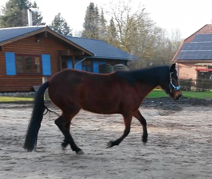 Hübsche, braune Paso Peruano Stute, 13 Jahre, ca. > 1,47m, zu verkaufen. Sie zeigt sich unter dem Reiter 4 gängig, mit viel Tölt (Paso Llano). Auf der Weide zwischendurch auch mal "Pass" (Sobreandando). Rassetypisch hat sie Temperament (Brio). Sie ist sehr bequem zu sitzen und arbeitet gerne mit ihrem Menschen, geht gerne spazieren, mag Bodenarbeit usw. Seit 2 Jahren wurde sie nicht mehr geritten (aus gesundheitlichen Gründen meinerseits). Sie rosst regelmäßig, wäre aufgrund der Abstammung wohl auch für die Zucht (Gangpferde z.B. Aegidienberger, Paso Iberoamericano ) interessant. Auf DSLD/ESPA hatte ich sie Untersuchen lassen, auch Bluttest, war ohne Befund. Sie ist Weidehaltung mit Futterzuteilung gewohnt und ist in einer Herde rangmittel. Vom Händling bevorzugt sie einen strukturierten, ruhigen Ablauf und bindet sich eher an eine Person. Verkauf erfolgt am liebsten in Offenstall oder Robusthaltung, das ist sie seit 8 Jahren gewohnt und fühlt sich wohl damit. (Thema Robusthaltung, "Thermoregulation, das häufig missverstandene Thema", z.B. vet-tcm.de) Bitte nur melden bei ehrlichem Kaufinteresse und einem zeitnahem Kennenlerntermin (ich bin zeitlich eingebunden). Die Stute könnte bei Bedarf - nach erfolgtem Kauf - auch noch bis zum Frühjahr (gegen Futterkostenerstattung) hier bleiben. Ein erneutes professionelles Antrainieren kann bei Bedarf vermittelt werden. Da ich Privatverkäuferin bin, der Verkauf erfolgt ohne Gewährleistung, Umtausch, Reklamation.