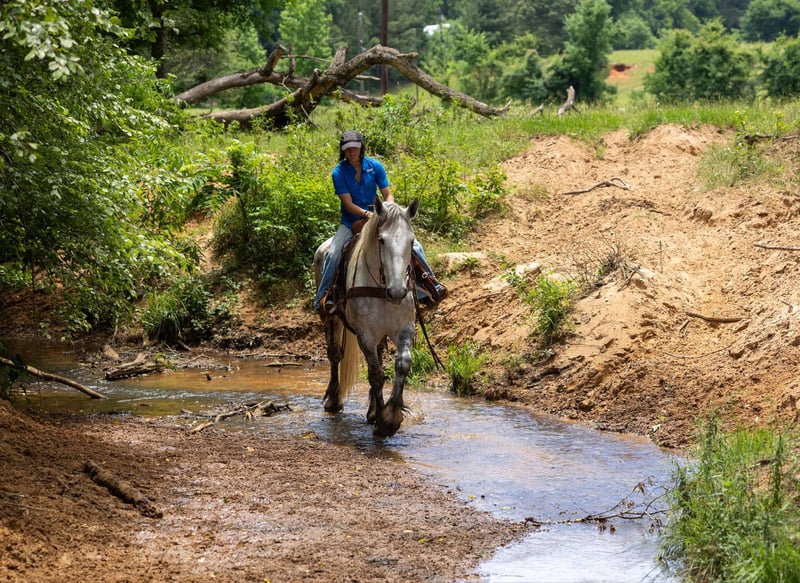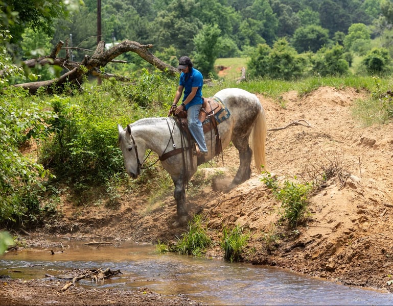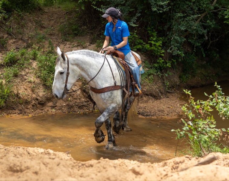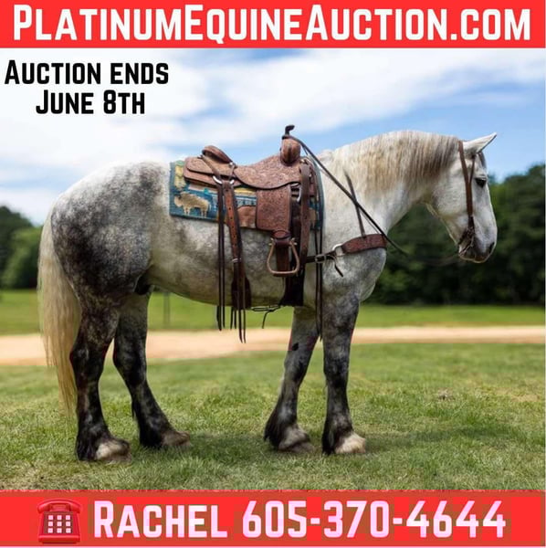 ONLINE AUCTION Place your bids at www.PlatinumEquineAuction.com Starting Bid $3500 Auction ends June 8th, 2025 Need a new saddle? Check out White Rock Saddles on our website or Facebook! Artemis is a 9 year old gray draft cross gelding! He stands 16.2 hands tall and is stout, he is 3/4 Percheron and 1/4 Quarter horse. Artemis is the absolute sweetest gelding, he will meet you at the gate and absolutely loves attention! Artemis started his career as a driving horse and has been drove both single and double, he was started under saddle as a 3 year old and has since done a little bit of everything! Artemis has been trail rode all over, he has been hauled to lots of state parks and has been on overnight camping trips, he crosses the creeks, logs and bridges! He has also been rode in parades and rode all over town. He will go anywhere you ask him and aims to please! If you’re looking for a one of a kind gelding here he is! Be sure to check out his full video! Artemis is located in Rusk TX, nationwide shipping is available! Call or text TR Livestock Rachel 605-370-4644 for more info! ONLINE AUCTION Place your bids at www.PlatinumEquineAuction.com Starting Bid $3500 Auction ends June 8th, 2025 Need a new saddle? Check out White Rock Saddles on our website or Facebook!