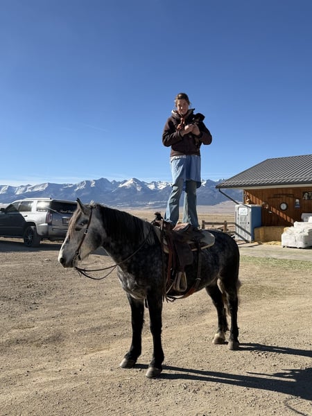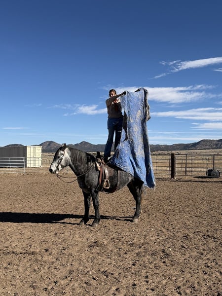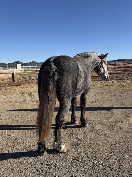 ⚜️𝓽𝓱𝓮 𝐆𝐎𝐋𝐃 𝓢𝓮𝓵𝓮𝓬𝓽⚜️ Happening now thru MONDAY | MARCH 23rd - Available EXCLUSIVELY on HorseBid's website! For more details and to register visit: www.Horsebid.com CONSIGNOR CONTACT: Sunset Ranch 719-239-0154 LOCATION: Westcliffe, CO BREED: Percheron Quarter Cross REGISTERED: No COLOR: Gray HEIGHT: 16 AGE: 5 GENDER: Gelding Jasper is a super safe, easy going, sweet tempered gentleman! He will take you wherever you need to go with no fuss! He has been in the mountain trails, crosses creeks, bridges, obstacle courses, flags, tarps, roping the dummy, has been used around heavy equipment, traffic safe, he has been there done that! A true gentleman!