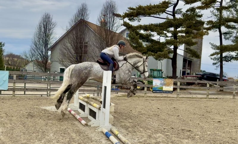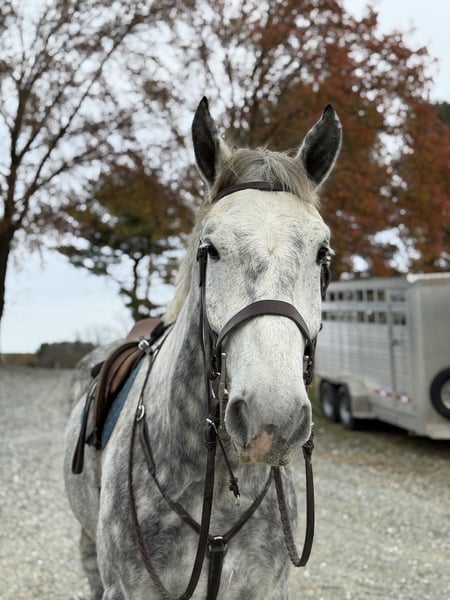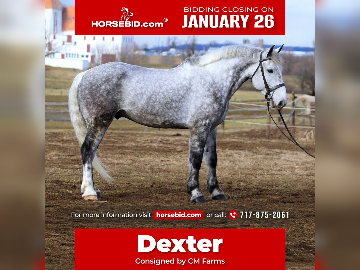 𝐉𝐀𝐍𝐔𝐀𝐑𝐘 ⭐️𝑨𝒍𝒍 𝑺𝒕𝒂𝒓 𝑳𝒊𝒏𝒆𝒖𝒑⭐️ Happening now thru MONDAY | JANUARY 26th - Available EXCLUSIVELY on HorseBid's website! For more details and to register visit: www.Horsebid.com CONSIGNOR CONTACT: CM Farms 717-875-2061 LOCATION: Gap, PA BREED: Perch/QHx REGISTERED: No REGISTERED NAME: Dexter COLOR: Dapple Grey HEIGHT: 16.3-17 AGE: 6 GENDER: Gelding Meet ✨Dexter✨! This big boy is a 6-year-old, 16.3–17hh PerchX gelding. He is incredibly eye-catching, covered in dapples with a long, flowing tail that reaches the ground. He always wears the sweetest expression! He’s broke to ride Western and English and has also been started in harness. This handsome boy will make someone an incredibly fun and versatile partner. Under saddle, Dexter has a solid walk, trot, and canter in both directions in the arena. He’s sturdy, sensible, and well-balanced. He’s an easy horse to ride—right in the perfect in-between of whoa and go—and he’s responsive to both seat and voice aids. For a bigger build, he carries himself very well and shows surprising athleticism over fences. He’ll happily pop over crossrails and solid fences, and he has schooled up to 2’6” with scope for more. He’s also been cross-country schooling and never hesitated at a thing—he even handled the ditch combination beautifully without batting an eye. On the trail, Dexter has plenty of miles and truly enjoys being out. He keeps his steady demeanor and is happy to go anywhere you put him in the group. He gets along well with other horses and doesn’t mind if one rides up a little close. He’s been trailered out to several local trail systems and always behaves perfectly. He also went to multiple hunter paces this fall and jumped everything confidently. He would be a fun one to take out fox hunting. He’ll cross water, navigate tight wooded paths, and lope across open fields—he’s simply a fun, enjoyable partner to ride. He’ll even lay down to get on and off! Dexter had one home before coming to us, and understandably took some time to settle into our barn. He can be nervous on the ground, but he never acts out or becomes naughty—he just needs someone patient to give him reassurance, hold his hand, and help build his confidence. He truly bonds with “his person,” and he’s funny in that he relaxes the moment you get on his back; it’s like his worries melt away under saddle. The world can feel big and scary for him, and we don’t hold that against him. He stands in crossties or a straight tie for grooming and tacking. In true draft fashion, he needs continued work with picking up his feet and currently requires stocks for shoeing. We are continuing to work on this until he leaves our care, and he’s already made leaps and bounds of progress. While he is likely suitable for a beginner rider in the saddle, he should go to someone with at least some experience to help guide him on the ground and continue building his confidence. Dexter is a genuinely incredible young horse with a bright future, and we’re committed to finding him the great home he deserves.