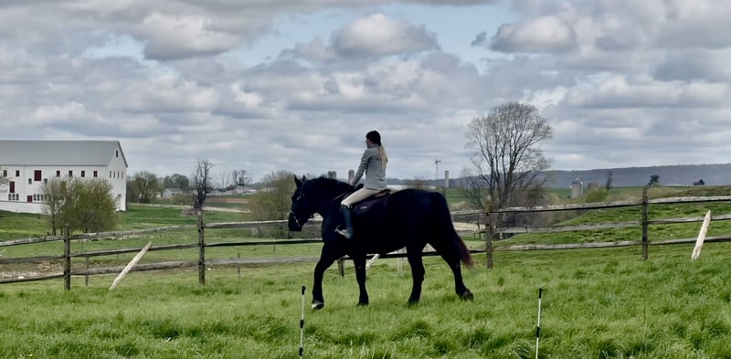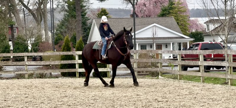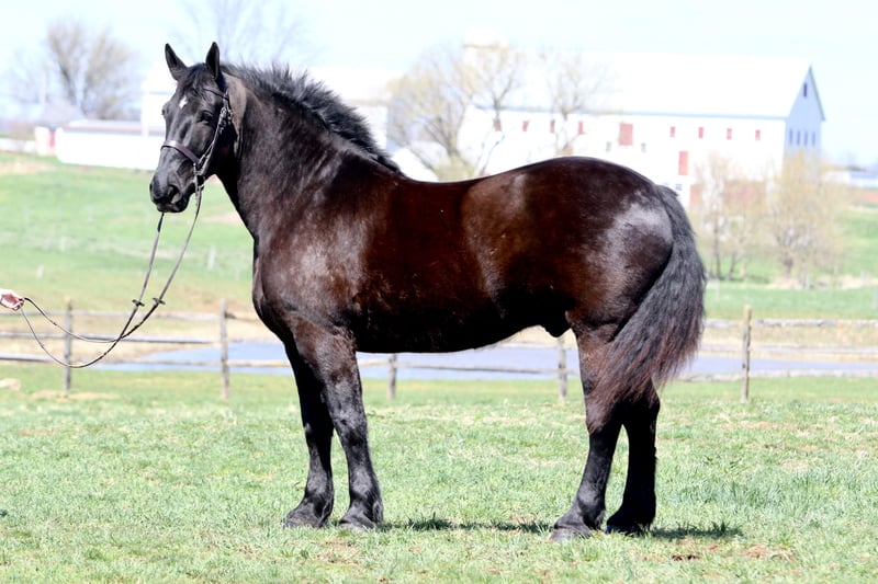 AVAILABLE ON ONLINE HORSE AUCTION AT www DOT MagicHorseAuction DOT com BIDDING OPEN NOW thru TUESDAY | APRIL 29th - BUY IT NOW AVAILABLE! *Final price will be determined on auction site* CONSIGNOR CONTACT INFO: Juli Hubik 717-875-2061 LOCATION: Gap, PA "Goliath – 6yo, 17.3hh Percheron Gelding Meet Goliath—he’s not just a horse, he’s basically a moving barn with a personality. Standing at a whopping 17.3hh, this gentle giant is the Percheron equivalent of a Mack truck… but with better manners and a softer heart. Not only is he huge, but he’s also a total showstopper—put together like a model and with a temperament to match. If you’re looking for the world’s most reliable husband horse, Goliath might just be your guy. In the ring, Goliath is a bit of a push ride. He’s the “easy-going, let’s take it slow” type—but when you ask him to go, he’ll pick up the pace. His walk, trot, and canter are smooth and comfortable in both directions (and yes, he’ll trot like he’s auditioning for a dressage test if you ask nicely). His brakes are top-notch—just a “whoa” and a sit back, and you’re stopping on a dime. He’s a solid, forgiving partner who’d let you crawl around him like a jungle gym (but we’re not saying that’s the safest idea). If you want a horse that’s steady, sane, and doesn’t care if you wear a tutu to ride—this is your guy. Trail rides? Goliath is built for that. He’s been up and down mountains, crossed rivers, and cantered through fields like he’s auditioning for a role in a western. His idea of a spook is to stop and take a long, dramatic look. No bucks, no rears, no “I’m outta here!” moments. He’s been desensitized to pretty much everything—tarp-flapping, barking dogs, traffic, mini bikes—he’s got it all covered. In the barn, Goliath is an absolute gem. He’s a perfect gentleman—stands quietly for grooming, tacking, farrier visits, and the dentist. No bad habits in the stall. He’s easy to catch, loves a good cuddle, and will probably try to climb into your lap if you’re not paying attention. Trailer loading? No problem. He’s a pro—quiet as a mouse on the road. And yes, he might forget that he’s not a lap dog, but honestly, who can blame him? Goliath is up to date on all his health checks—Coggins, shots, farrier, dentist, and deworming—so he’s ready for whatever adventures you have in store. Whether you want to dabble in low-level dressage, take him out for trail rides, or send him to your husband for a fun ride, Goliath is your guy. He’ll happily do it all, including being the world’s best couch potato if that’s what you need. We’re looking for the perfect home for Goliath. If you think you can handle this gentle giant, shoot us a message or call. But be warned—he may try to steal your snacks. " "