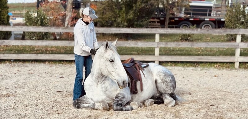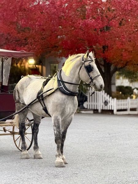 ⚜️ 𝓽𝓱𝓮 𝐇𝐨𝐫𝐬𝐞𝐦𝐚𝐧'𝐬 𝓢𝓱𝓸𝔀𝓬𝓪𝓼𝓮⚜️ Happening now thru MONDAY | DECEMBER 1st - Available EXCLUSIVELY on HorseBid's website! For more details and to register visit: www.Horsebid.com CONSIGNOR CONTACT: CM Farms 717-875-2061 LOCATION: Gap, PA BREED: Perch/QH REGISTERED: No COLOR: Grey HEIGHT: 17 AGE: 7 GENDER: Gelding Here’s the highlight of our year — meet Silver! The ultimate guest horse! This breathtaking horse is a 7-year-old Percheron/QHx gelding standing a sturdy 17hh. Silver was put together right — he’s got curves in all the right places, he is quite substantial, making him great for a variety of different riders, and his brain is simply unbeatable! He is broke to ride Western, English, bareback, and broke to drive single or double. He will lay down on command to mount or dismount! Although Silver is a big boy in every way, he is able to be athletic and has one of the cutest jumps in the barn. This guy has blown us away with not only his beauty, but his quiet, unfaltering mind, and we can guarantee he will do the same wherever he goes! Under saddle, Silver is hands-down one of the most fun and safe horses to ride! He’s so incredible — we have even ridden him bridleless at the walk, trot, and canter. He’s well educated with walk-to-canter transitions, he neck reins and direct reins, he moves off of leg, and he’s adjustable at all three gaits. His trot and canter are some of the most comfortable we’ve ever ridden — incredibly easy to sit — and at the canter he will make you feel like you’re on top of the world! He responds well to voice cues and will stop on a dime with just a “whoa” or by sitting back. He is fun for any level of rider because he does not get upset if you make a mistake or flop around, and he has enough buttons to keep things fun for someone more advanced. He is more of a push ride, and you can have plenty of leg on him; however, he’s always responsive when you ask him to go and will carry himself very well. This guy is so well balanced, steady, and willing to please. He is even able to canter little circles in both directions and leg-yield at all three gaits. He’s one you could take into the dressage ring tomorrow, and we don’t doubt he’d clean up the ribbons. On the trail, Silver keeps the same steady mentality. He’ll pack anyone you put on him with reliability, a sure foot, and a happy attitude. He’s the same horse off property as he is at home- and he’s the same horse EVERY time you pull him out. This handsome man has been everywhere — from cantering through open fields, going up and down windy wooded trails, through creeks, over bridges, and through tunnels — he’s even ridden right into town and through the drive-thru! You can take him to the grocery store, tie him up while you shop, and come back out to find him waiting patiently. He is unflappable, sturdy, and will lead, follow, or go anywhere you put him in the group. He doesn’t mind if another horse rides too close to him and seems to get along with everyone. Silver has been out on multiple hunter paces with us this past fall, and he would make an incredible candidate for fox hunting. This gelding is extremely honest to all the jumps, whether it be logs, coops, or even the silly inflatable kinds — point him in the right direction, and he will take care of everything else. He has also been cross-country schooling with us and proved himself to be extremely athletic and cute with his form and knees. He did the ditch combination with no hesitation — and if you are familiar with how difficult that is for some horses, that says a lot in itself! He is so big that when he takes a larger jump it feels like you’re popping over a crossrail. He’s jumped some sizable 3’–3’3” coops and could likely even do bigger! This guy will give you a feel like you’re floating on air, and his confidence truly will make anyone a better rider! In the barn, Silver is really just an oversized puppy dog. He loves people, loves being brushed, and loves getting any type of attention! Most importantly, he has good manners in his stall, to tack up, and on the ground. This giant love bug is the type of horse that will meet you in the pasture when he sees you coming- and is always happy to spend quality time with his person. Once you’re done riding him, he will follow you anywhere like a puppy — no lead rope required! He loads right into the trailer, gets along with everyone, and is genuinely such a fun horse to have in the barn. Staying true to his typical draft nature, the one area Silver could still use some work on is picking up his feet. Our farrier has used stocks with him, because it's easier on his back; however, even he said Silver has one of the best temperaments, and with just a couple more sessions and some practice, he wouldn’t need them anymore. This is something we are continuing to work on until he leaves. Special ones of his size, athletic ability, and incredible temperament do not come around very often — he is truly a once-in-a-lifetime type of horse. We have all fallen in love with him at our barn and cannot say enough good things about him. He will be your best friend, and the kind of partner you’ll never EVER be able replace.