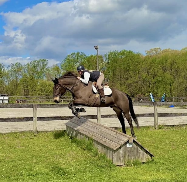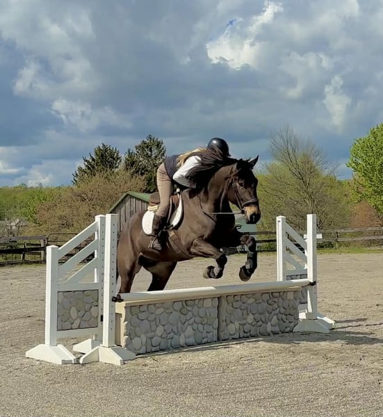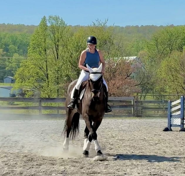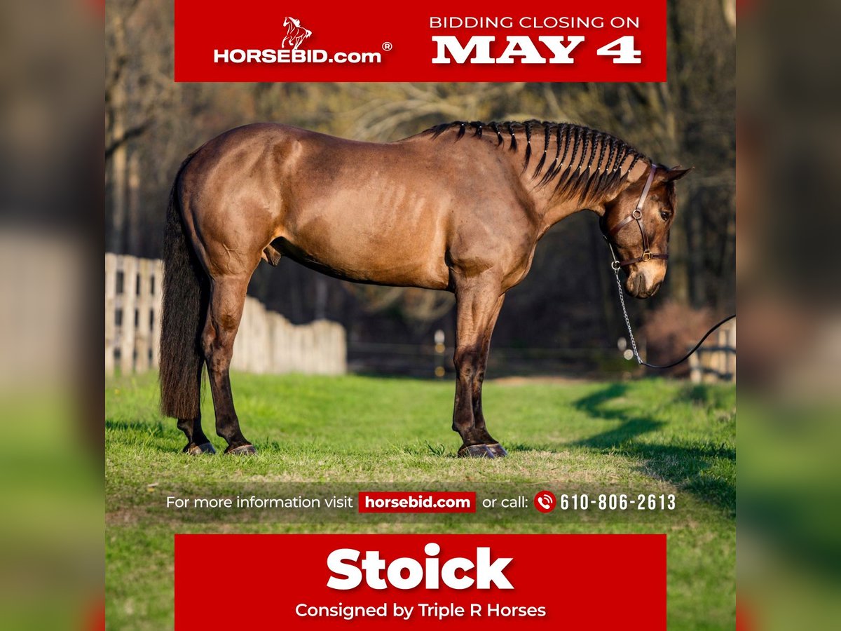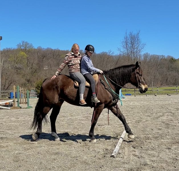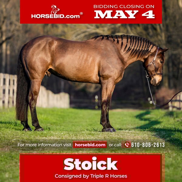 ▪️▫️◾️𝐭𝐡𝐞 𝑴𝒂𝒚 𝐒𝐞𝐥𝐞𝐜𝐭◾️▫️▪️ Happening now thru MONDAY | MAY 4th - Available EXCLUSIVELY on HorseBid's website! For more details and to register visit: www.Horsebid.com CONSIGNOR CONTACT: Triple R Horses 610-806-2613 LOCATION: New Holland, PA BREED: Percheron Quarter Horse Cross REGISTERED: No REGISTERED NAME: Stoick COLOR: Bay HEIGHT: 16.3 AGE: 7 GENDER: Gelding “Stoick” is a 7yr old, 16.3hh, Percheron/QH cross gelding. I am not even sure where to begin, but I will start by saying, I will be extremely jealous of the lucky person who gets to keep this guy forever. This is one of the most unique draft crosses that I have ever owned. From his regal presence, to his almost “human” like personality…. Stoick is truly here to be your best friend. Not only is he extremely friendly, caring, and in your pocket, he has a very calming “vibe” about him, he is very therapeutic to be around. Some days I just go in his stall with him and hang out. He will place his huge head into your arms and lift your spirits. If you have been searching for a true, forever best friend, your search is over, here he is. Stoick is the perfect combination of his breeding. He is a large bodied horse, with thick legs and nice hooves. But he is not a clunky drafty guy. He is uphill, athletic, and agile on his feet. Making him eligible for many different disciplines. I have never loved riding a draft cross as much as I love riding Stoick. His intuitive brain, athleticism, and ability to keep you safe, all packaged into a tall, dark, handsome and charming fellow. In the barn, Stoick has zero bad habits or vices. He is quiet in his stall, and never asks for anything. He will hang his head out and take a nap, or ask for pets. He is a babysitter in the pasture and gets along with everyone. He is the first one to greet you in the pasture or at the gate and nuzzle your arm if you are holding a lead rope as if he is saying “let’s go do something together!” Stoick will stand around on the cross ties all day long to be groomed, clipped, braided, tacked, bathed, etc. He will nuzzle you and put his head in your arms any chance he gets. When I am grooming a horse, or braiding a horses tail by his stall door he will try to get my attention, “me next please!”. He is extremely docile and gentle to work around. He is gentle with kids, and beginners, and has wonderful ground manners. He is safe with dogs running around his feet and playing around him. Stoick is a good boy for the farrier and the vet. He loads and trailers very well, and fits into my regular size horse trailer. He will back off or turn around to unload. You can tie him to the trailer to get ready to go and he will always stand patiently. Go hit the trails and have fun. Stoick will keep you safe. He will go up, over, under, through, absolutely ANYTHING that you ask. I have almost never ridden such an agreeable, try it, okay I will do this for you type of horse. You ask, he goes. I absolutely LOVE hitting the trails with Stoick, he is relaxing, reliable, safe, and brave the whole ride. I have asked Stoick to do some pretty sketchy things and he has never told me no. From mountain climbing, to swimming, crossing scary bridges, going down steep banks, jumping logs along the way, Stoick is always going to get you to the other side in one piece. You can trot and lope him through the fields or along the lakeside then go right back to leisure walk. He will lead your group through the thick and thin without even blinking an eye. Stoick will ride out with a lengthy walk with faster horses or knock it down and go nice and slow with slower horses and ponies. He just knows. Stoick will lead, follow, go out in groups and alone. He is independent and happy to ride alone, or leave the group. Whether you go out for 15 min or 4 hours, he is ears forward and happy to go on an adventure. Stoick is 100% traffic safe, safe with bikes, dogs, hikers, deer, snakes, trains, turkeys, you name it. Enjoy your ride, and dismount grinning ear to ear! Stoick rides western, english and bareback. He has smooth, adjustable gaits, and a lofty, extremely comfortable canter. He is soft in your hands and a very simple ride. He is the type of horse that could pack around your husband, kids, friends, then go to work for you. He is very smart and can tell when his rider is a beginner or not. He gentles down his gaits and aids and doesn’t get upset if his rider is off balance etc. Stoick can certainly take a joke, and he is just happy to be involved. He is the perfect combo of whoa and go, pokey as long as you want, but goes to work when asked. He is very intelligent and learns SUPER fast. He enjoys pleasing his rider and he does not get upset when asked to try new things! Stoick is happy to work in the ring or hack out, he doesn’t mind either way! Stoick is the same horse every ride. If he sits, you can tack him right up and go ride. He does not offer any silly business. He does not need to be in a routine. And he is the same horse off property, in fact, he treats new places like he has lived there forever. He is the horse that you can jump on bareback in a halter and lead rope and go for an evening stroll around the farm. He is also the horse that your kids can climb on and go play with, knowing that they will be taken care of. In the ring, Stoick will walk, jog, trot, and canter. He moves nicely off of your leg and will ride off of your seat, and listens to voice commands. Stoick will move laterally, side pass, pivot, neck rein, back up, you can ask for a quick stop or bring him down slowly through his gaits. He listens right away to the word “whoa”. You can ask him to do a western jog, or extend his trot and move out. He is the type of horse that almost just feels “custom” when you are riding him, like he can feel your thoughts. Stoick is learning the mechanics to a lead change and has offered several lead changes. His tr