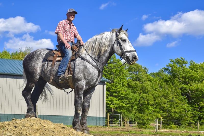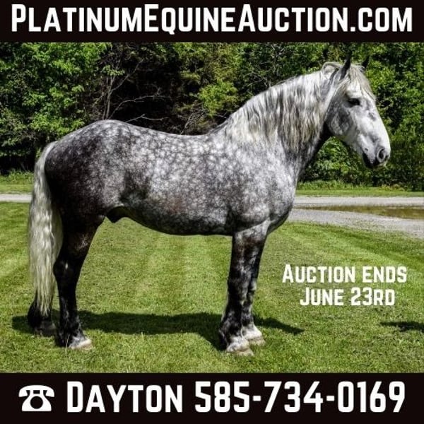 ONLINE AUCTION Place your bids at www.PlatinumEquineAuction.com Starting Bid $3500 Auction ends June 23rd, 2024 Need a new saddle? Check out White Rock Saddles on our website or Facebook! Look at what we have here… if you have on your horse shopping list big, pretty, and safe, you’re going to want to take a look at Jackson. Jackson is a 7-year-old Draft cross standing at 16.3H. With his pretty Dapple Grey color, he will get you noticed whether you’re riding him on the trails or taking him for a drive through town. If you’re worried about him being too big to get on from the ground, Jackson knows how to lay down on command and side pass over to the mounting block to pick you up so you can get on him more easily. Jackson may be big, but he will still walk, trot, and canter in the arena. We have put him through our obstacle course, and he will cross anything you encounter on the trails. Jackson has worked with multiple veteran groups and has also done therapy work. His calm demeanor and gentle soul makes everyone fall in love with him. Jackson is a very versatile gelding, and if you don’t want to ride, you can hook him up to a wagon or cart and go for a nice drive down the road or through the woods! Jackson easily picks up all four feet and will stand for the farrier. He is good for the vet, clipping and bathing him. Jackson sells a 100% sound with no vices. If Jackson sounds like the horse for you, contact Dayton at 585-734-0169 for more information. Located in Warsaw, NY. ONLINE AUCTION Place your bids at www.PlatinumEquineAuction.com Starting Bid $3500 Auction ends June 23rd, 2024 Need a new saddle? Check out White Rock Saddles on our website or Facebook!
