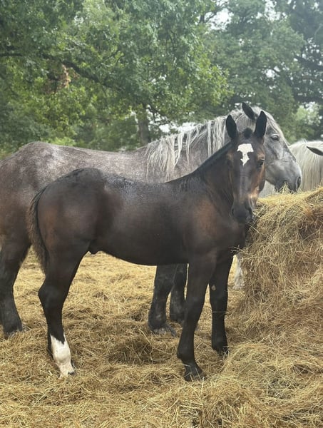 Superbe poulain pp percheron Un vrai pot de colle très gentil Serai parfait pour devenir le cheval d’une famille ou un cheval d’attelage Manipulé depuis sa naissance Licole Monte en van et camion Est déjà sortie en concours modèles et allures avec la mère et tout seul et a toujours un comportement exemplaire !
