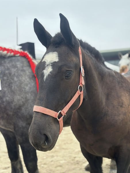 Prachtige pp Percheron-ruin Een echte knuffelbeer, zeer vriendelijk Zou perfect zijn als gezelschapspaard voor een gezin of een aanspanningspaard Sinds zijn geboorte gesocialiseerd Lico (getemd) Kan in een bestelwagen of vrachtwagen geladen worden Heeft al deelgenomen aan model- en gangwedstrijden met de moeder en solo, en gedraagt zich altijd voorbeeldig!