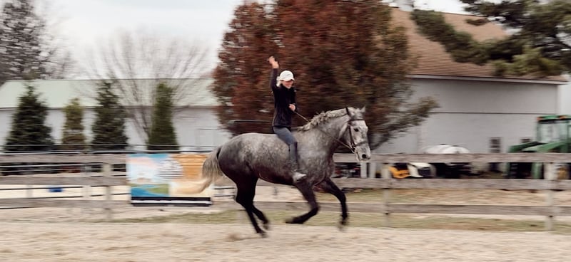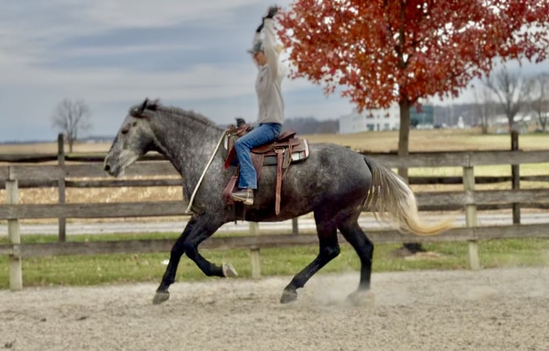 ⚜️ 𝓽𝓱𝓮 𝐇𝐨𝐫𝐬𝐞𝐦𝐚𝐧'𝐬 𝓢𝓱𝓸𝔀𝓬𝓪𝓼𝓮⚜️ Happening now thru MONDAY | DECEMBER 1st - Available EXCLUSIVELY on HorseBid's website! For more details and to register visit: www.Horsebid.com CONSIGNOR CONTACT: CM Farms 717-875-2061 LOCATION: Gap, PA BREED: Perch/QH REGISTERED: No COLOR: Grey HEIGHT: 16.1 AGE: 4 GENDER: Mare Check out this pretty lady! 😍 ✨ Vegas ✨ is a 4-year-old Perch/QHx mare standing right around 16.1–16.2hh. This mare has been blessed in more ways than one. She is sturdy, stunning, and her movement is to die for! She is a lighter, athletic build, making her ideal for people that want the good draft brain—minus the dinner-plate feet. She is broke to ride English, Western, bareback—and she drives single and double. She also lays down on command with an easy cue! In the ring, Vegas is a simple and straightforward ride. She has had an amazing foundation put on her, and she’s ready for any direction you take her. She has one of the best walk-to-canter transitions in the barn, she stops on a dime, and she leg-yields and side-passes. She’s an incredibly fun horse to ride with a comfortable trot and canter. She will extend and collect, she’s very adjustable, she has lovely self-carriage and balance, and she has a good attitude to match! She would kill the game in the dressage arena, cross country, or arena jumping! She has been lightly started over small jumps and has proven to be cute, honest, and athletic. This mare has one of the best brains—you can pull her out when it’s windy and freezing, and she’ll keep her head on her shoulders. She is a rare one, with a steady demeanor that outshines horses twice her age! On the trail, Vegas has some miles under her belt, and she’s a true trailblazer. She goes anywhere you point her—no questions asked! She’s been out on hunter paces with us this fall, and she proved to be the same steady horse in a busy environment. She likes to go out with happy ears forward the whole ride. She’s happy to go anywhere you put her and won’t get upset if another horse gets in her space. She’s been through rocky trails, open fields, through and over bridges, into the creeks and river, and has seen all the wildlife you encounter without so much as batting an eye. She will pop over logs and small fences; she has an easy jump to ride and is guaranteed to get you to the other side. She’s a babysitter when she’s out and would be suitable for a variety of riders. In the barn, Vegas is sweet, mannered, and has zero vices. She is not your typical mare—she gets along with everyone, no drama needed. She stands to clip, bathe, groom, and tack up, and she’s always a lovely lady for the farrier, vet, and dentist. She loves her people and loves scratches so much she’ll make funny faces! Vegas acts the same on property as she does trailered out, and she trailers and loads quietly. She has been through our desensitization program and passed with flying colors. She’s easily a barn favorite here—one you never have to worry about and one we always look forward to working with. If you want a fun, honest, talented young horse to continue bringing along, don’t pass up Miss Vegas!