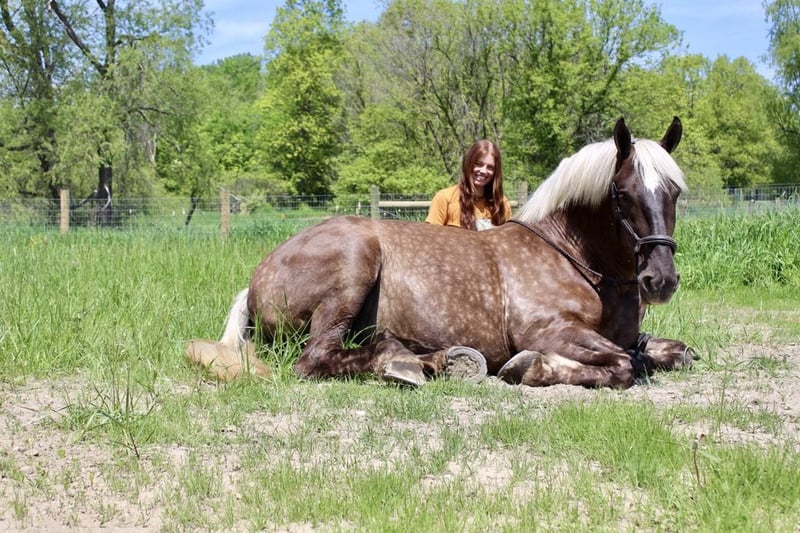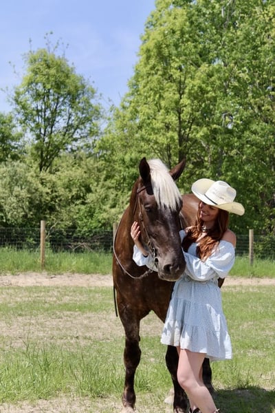 ONLINE VEILING Plaats uw biedingen op www.PlatinumEquineAuction.com Startbod $3500 Veiling eindigt 14 juli 2024 Een nieuw zadel nodig? Bekijk White Rock Saddles op onze website of Facebook! Als een paard uit een sprookje je stal in zou kunnen lopen, zou zij het zijn. In het echt is ze net zo magisch. Met trots stel ik je voor aan Birdie. Dit draftcross meisje is 16,3 op 4-jarige leeftijd. Ze heeft een prachtige blonde manen en vloeiende staart die haar zilver gevlekte vacht complimenteren. Birdie heeft een uitstekende bouw. Ze is goed gespierd met een geweldige botstructuur en stevige hoeven. Ze is zo mooi dat je de hele dag wel naar haar zou kunnen kijken! Birdie heeft de meest enthousiaste persoonlijkheid die je in een paard zult vinden. Ze is ALTIJD bereid om te behagen. Ze heeft veel vrijheidstraining gehad. Birdie weet hoe ze moet zitten, liggen en ja en nee zeggen. Onder het zadel is ze moeiteloos te rijden. Ze heeft een rustige stap, een prachtige draf en de beste galop die je ooit zult zien. Ze heeft geweldige overgangen, zowel opwaarts als neerwaarts, en haar remmen zijn goed. Ze draagt zichzelf met veel cadans en klasse. Ze is bereden op trails en op de weg, en ze gaat waar je maar wilt zonder gekke dingen te doen. Succes met haar bang maken! Ze is zo cool als maar kan in vrijwel elke situatie. Naast haar vrijheidswerk heeft Birdie een paar hele coole knopjes. Ze kan galopperen vanuit stilstand, leg yield, side pass, back up, aan- en afzetten van zit en beendruk. Birdie speelt met dressuurbewegingen van het 1e niveau, zoals schouderbinnenwaarts, hielen binnenwaarts, extensie en verzameling in al haar gangen. Birdie is heel licht gestart over hindernissen. Ze heeft verschillende jagerparcoursen gelopen en heeft al heel wat uurtjes op de trails doorgebracht! Dit is het mooiste meisje van de stad. Bel of sms Ellesse Schwartz op 248-390-6831 voor meer informatie. Birdie woont in Howell, MI 48855. ONLINE VEILING Plaats uw biedingen op www.PlatinumEquineAuction.com Startbod $3500 Veiling eindigt 14 juli 2024 Heb je een nieuw zadel nodig? Bekijk White Rock Saddles op onze website of Facebook!
