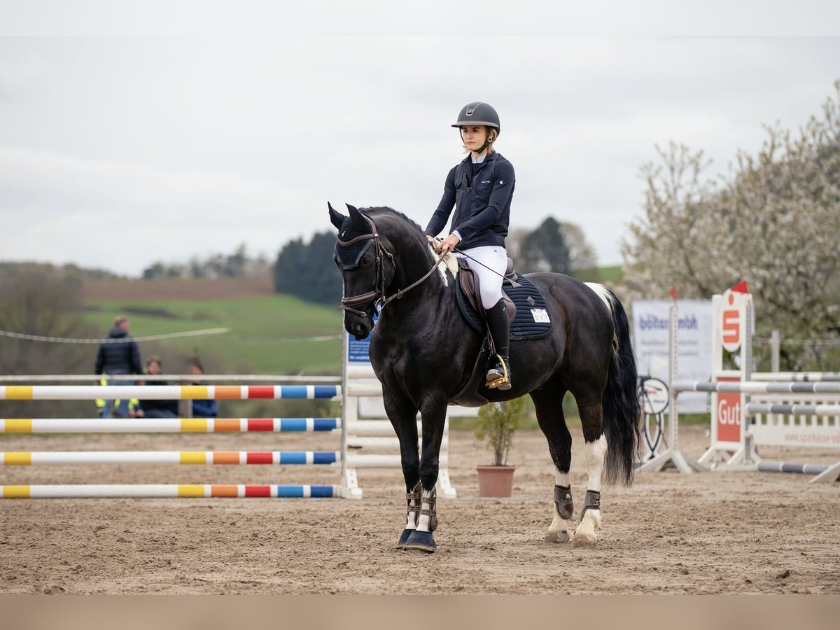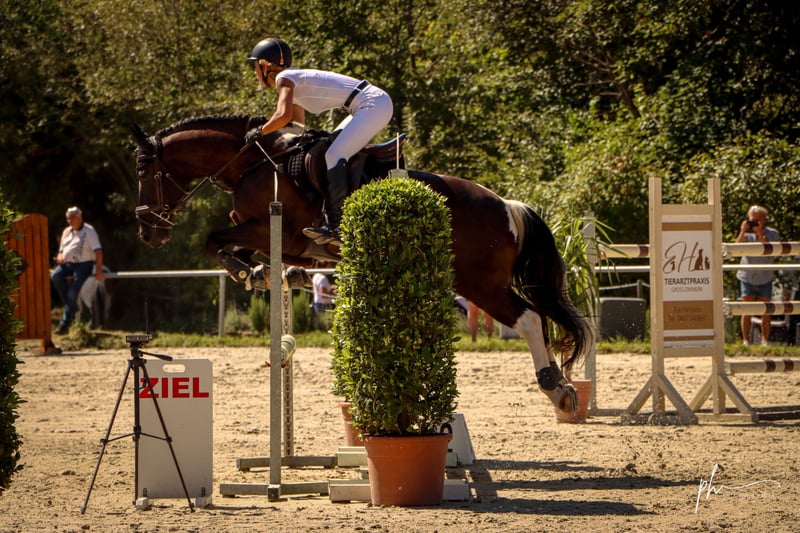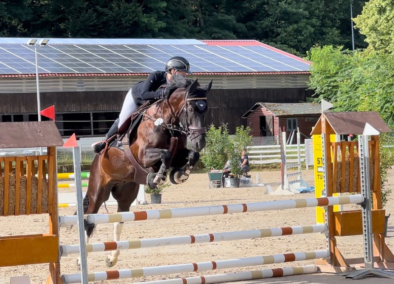 Maximo – ehrlicher Allrounder mit viel Potenzial für ambitionierte Freizeitreiter & Amateur-Sport Zum Verkauf steht mein 9-jähriger Wallach Maximo (Friesen-Pinto-Mix), ein absolut liebenswerter und charakterstarker Partner, mit dem ich in den letzten drei Jahren intensiv gearbeitet und mich gemeinsam weiterentwickelt habe. Maximo ist ein fein zu reitendes Pferd mit guter Grundausbildung und klarer Entwicklung vor allem in der Dressur. Aktuell bewegen wir uns auf einem sicheren A-Niveau mit Tendenz Richtung A**, was sich auch im täglichen Training widerspiegelt (Seitengänge, Übergänge, Verstärkungen etc. sind vorhanden und werden stetig gefestigt). Im Springen ist er grundsätzlich vermögend und bereits Parcours auf A-Niveau gegangen. Er zeigt dabei, dass er mit dem richtigen Reiter und Vertrauen auch konstant durch den Parcours gehen kann und bringt hier weiteres Entwicklungspotenzial mit. Maximo ist kein „einfaches Lehrpferd“, sondern ein Pferd, das einen Reiter braucht, der: •fein, aber konsequent reitet •ihm Sicherheit gibt •bereit ist, weiter an ihm zu arbeiten Dann bekommt man ein Pferd, das: •ehrgeizig mitarbeitet •sich stark an seinen Reiter bindet •und viel Potenzial zur weiteren Entwicklung mitbringt Im Umgang ist er absolut brav und unkompliziert. Er ist sowohl alleine als auch in der Gruppe jederzeit zuverlässig im Gelände zu reiten. Zudem ist er schmiede- und verladefromm, kennt die tägliche Bewegung in der Führmaschine und zeigt sich im gesamten Handling unproblematisch. Er wird regelmäßig im 8-Wochen-Takt physiotherapeutisch betreut – rein prophylaktisch, um seine Gesunderhaltung und Leistungsfähigkeit langfristig zu unterstützen. Ich wünsche mir für ihn ein Zuhause, in dem er weiter gefördert wird, aber auch Verständnis und Geduld bekommt. Ein reines Anfänger oder reines „Draufsetzen-und-läuft“-Pferd ist er nicht. Der Verkauf erfolgt schweren Herzens und nur, wenn alles wirklich passt. Weitere Infos, Videos und Probereiten gerne auf Anfrage.
