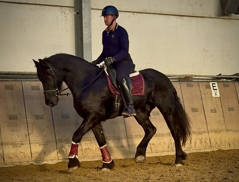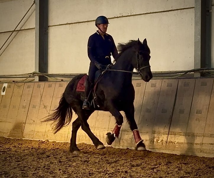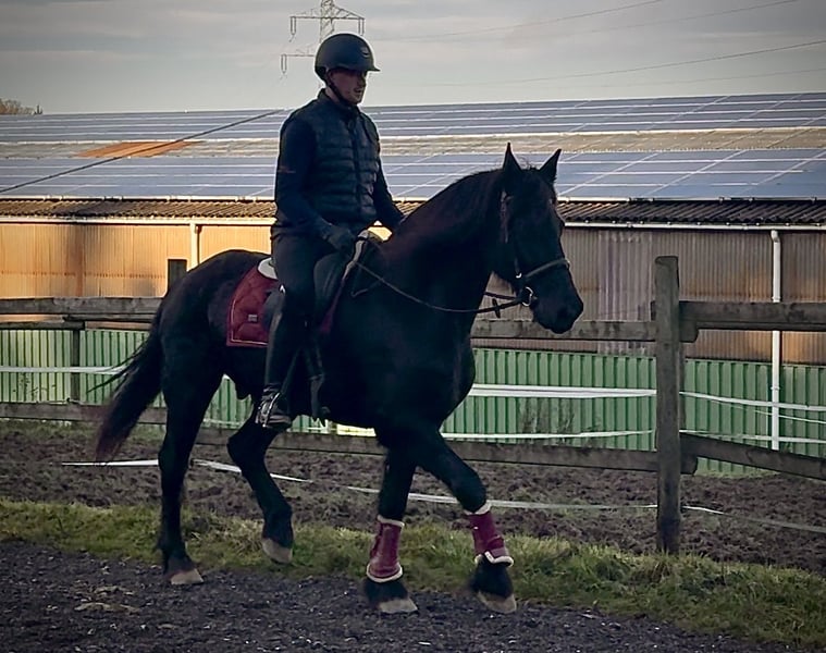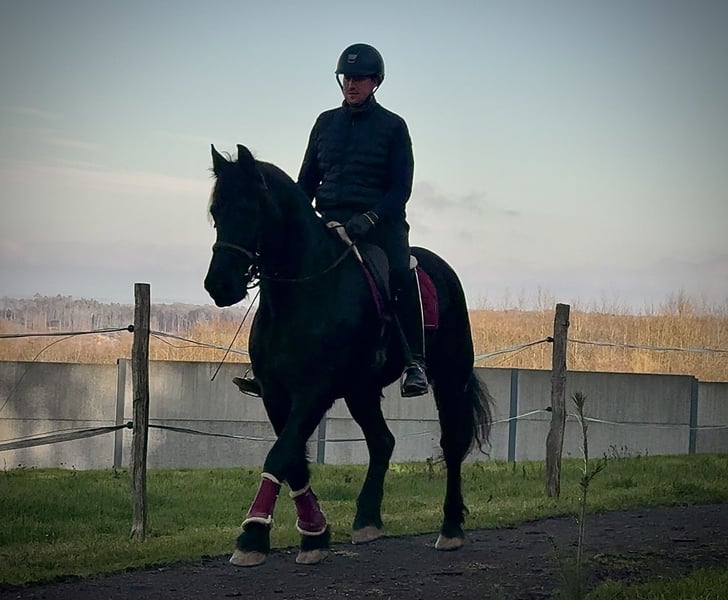 Name: El Dante Rasse: Barockpinto Geschlecht: Wallach Geburtsdatum: 25.03.2014 Alter: 11 Stockmaß: 1.56m Farbe: Rappe Abstammung: mit Abstammungsnachweis Charakter: menschenbezogen, zuverlässig, intelligent, lernwillig, neugierig Ausbildung/Eignung: Dressur, Freizeit, Barock Geländeerfahrung: aufmerksam, zuverlässig, unerschrocken, in der Gruppe Gesundheit: entwurmt, geimpft, Barhufer, ekzemfrei, Zähne kontrolliert Haltung: Box, Padockbox Besonderheiten: schmiede und verladefromm, herdenverträglich Die genannten Eigenschaften beruhen auf unserer persönlichen Einschätzung und stellen keine zugesicherten Merkmale dar. Preis: 9500€ (Bruttopreis) Haben wir ihr Interesse geweckt? Um Ihnen einen besseren Eindruck von El Dante zu geben, senden wir Ihnen sehr gerne sein Reitvideo zu. Selbstverständlich stehen wir Ihnen für eine ausführliche Beschreibung des Pferdes, persönliche Beratung und zur Beantwortung aller Ihrer Fragen auch telefonisch zur Verfügung. Bitte schreiben Sie uns hierfür jederzeit eine WhatsApp Nachricht, oder rufen unter folgender Telefonnummer an: +49 15119487595 Unsere Telefonzeiten sind täglich von 7:00 - 13:30 sowie ab 20:00Uhr. Wir freuen uns über Ihre Kontaktaufnahme! Eine klinische oder Röntgenologische Ankaufsuntersuchung kann gerne vom Tierarzt Ihrer Wahl durchgeführt werden. Natürlich kann El Dante sicher und komfortabel in sein neues Zuhause geliefert werden. Wir kümmern uns um alle notwendigen Vorbereitungen und den Transport, damit Ihr neues Pferd stressfrei, gut betreut, versichert und wohlbehalten im neuen Zuhause ankommt. Zurzeit präsentieren wir eine sorgfältig ausgewählte Vielfalt an Verkaufspferden. Bei uns finden Sie garantiert Ihr Traumpferd. Besuchen Sie uns auch gerne auf unserer Homepage unter: www.marvinsroyalhorses.de. Sehr geehrte Kunden, gerne stellen wir Ihnen unsere Pferde vor und führen, putzen, satteln, longieren, Bodenarbeit sowie Probereiten in der Reithalle, auf dem Platz oder im Gelände ist Ihnen möglich, um Ihr neues Familienmitglied näher kennenzulernen. Dieses kostet für ein Pferd 40€, für jedes weitere 30€ und wird beim Kauf wieder erstattet. Unsere Adresse lautet: Grube Ferdinand 50 53577 Neustadt Wied Google Maps: marvinsroyalhorses