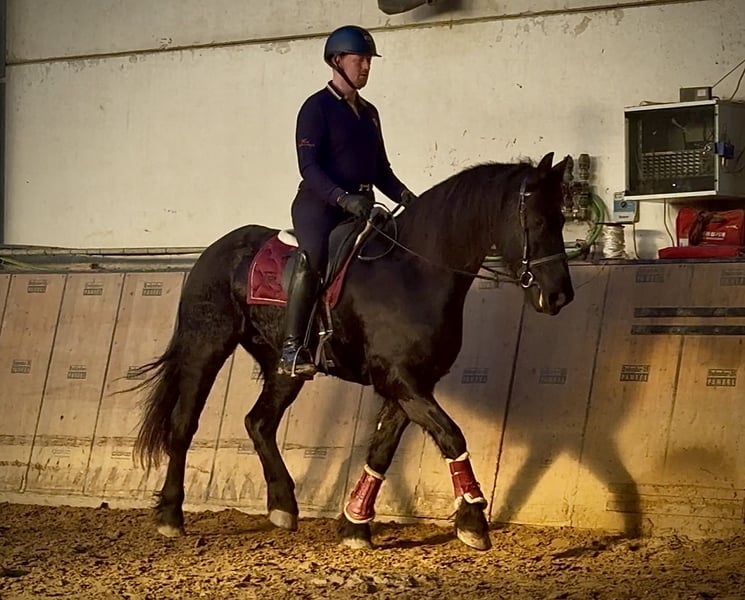 Name: El Dante Breed: Baroque Pinto Sex: Gelding Date of Birth: March 25, 2014 Age: 11 years Height: 15.6 hh Color: Black Roan Pedigree: Documentation available Temperament: friendly, reliable, intelligent, eager to learn, curious Training/ suitability: Dressage, leisure riding, Baroque riding style Trail Experience: attentive, dependable, fearless, comfortable in groups Health: dewormed, vaccinated, barefoot, eczema-free, teeth checked Stabling: box stall, paddock box Special Features: farrier and loading friendly, herd-compatible Please note that the above characteristics are based on our personal assessment and do not constitute a guarantee. Price: €9,500 (gross) Has El Dante caught your interest? To give you a better impression of El Dante, we are happy to send you his riding video. We are also available for a detailed description of the horse, personal consultation, and to answer all your questions via phone. Feel free to contact us anytime via WhatsApp or call us at: +49 151 19487595 Our phone hours are daily from 7:00 AM to 1:30 PM and again from 8:00 PM. We look forward to hearing from you! A clinical or radiological purchase examination can be carried out by your veterinarian of choice. Of course, El Dante can be delivered safely and comfortably to his new home. We will take care of all preparations and transportation so that your new horse arrives stress-free, well-cared-for, insured, and in good health. Currently, we offer a carefully selected range of horses for sale. With us, you are sure to find your dream horse. Visit us also on our website: www.marvinsroyalhorses.de. Dear customers, we are happy to introduce you to our horses and offer grooming, tacking, lunging, ground work, as well as trial riding in the riding hall, on the arena, or in the field, so you can get to know your new family member better. The fee is €40 for one horse, €30 for each additional horse, and will be refunded upon purchase. Our address: Ferdinand Grube 50 53577 Neustadt-Wied Google Maps: marvinsroyalhorses