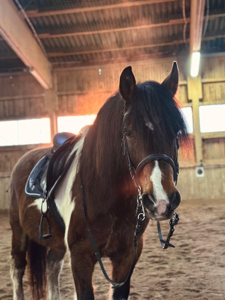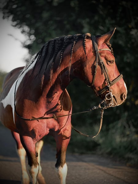 Zum Verkauf steht ein beeindruckender Barockpinto - Wallach.Dieser charmante Schecke besticht nicht nur durch sein elegantes Erscheinungsbild, sondern auch durch seine angenehme Größe mit einem Stockmaß von 160cm. Kilf kennt Offenstall und Box.Er geht in der Gruppe so wie auch alleine ins Gelände. Er eignet sich hervorragend für den Freizeitbereich kennt Festzüge und Halle. Klif benötigt einen erfahrenen Reiter, der zügelunabhängig reiten kann.Er ist ehrgeizig und will gearbeitet werden. Wenn Ihr auf der Suche nach einem treuen Freizeitpartner seit, der mit euch durch dick und dünn geht, dann könnte Klif genau der richtige für Euch sein. Bei Interesse freuen wir uns auf deine Kontaktaufnahme.