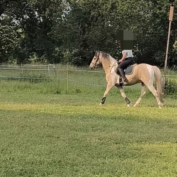 Verkaufe Barockpinto Wallach – Perfekt für Freizeit! Zum Verkauf steht ein wunderschöner Barockpinto-Wallach, geboren im Jahr 2020. Dieser beeindruckende Wallach besticht durch sein elegantes Buckskin-Fell und sein praktisches Stockmaß von 158 cm. Er ist bestens geeignet für den Freizeitbereich und begeistert durch sein angenehmes Wesen sowie seine ausgeglichene Art. Der Wallach ist gesund, regelmäßig geimpft. Er zeigt sich im Umgang freundlich, gelassen. Ideal für Reiter, die ein zuverlässiges und charmantes Pferd suchen, das sowohl im Gelände als auch in der Halle Freude bereitet. Aufgrund des Alters und Ausbildungsstand verkaufe ich ihn als Angeritten für diesen Preis. Durch sein alter ist er nichts für Anfänger oder schwache Reiter. Ich verkaufe ihn WG absoluten Zeitmangel wo ich ihn nicht gerecht werden kann. Daher muss er auch wieder angeschoben bzw. weiter ausgebildet werden und ich sehe hier von großartigen Probereiten ab. Zur Zeit ist er nur ca 1x die Woche mit einem Mädel im Gelände unterwegs. Bei wirklichem Interesse und für weitere Informationen stehe ich gerne zur Verfügung. Vereinbaren Sie gerne einen Termin für eine Besichtigung! Ich freue mich auf Ihre Anfrage!