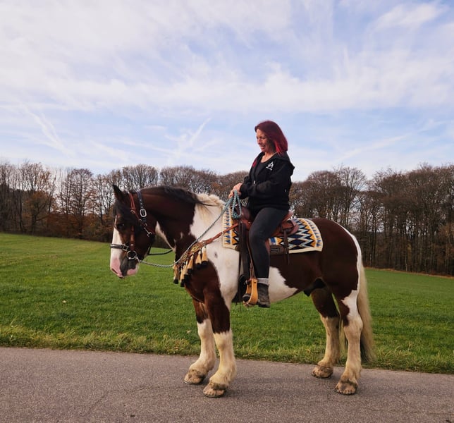 Barocker Scheck-Wallach “ROMEO – brav, freundlich & ein toller Freizeitpartner Eckdaten: • Name: ROMEO • Rasse: Barocker Scheck • Geschlecht: Wallach • Alter: 9 Jahre • Stockmaß: ca. 1,50 m • Ausbildungsstand: Freizeit geritten • Preis: / 7800,- Zum Verkauf steht der hübsche, barock gebaute Scheck-Wallach „Benito“ – ein sympathischer, ehrlicher Wallach mit angenehmem Temperament und viel Charme. 🐴 ROMEO ist: – brav, zuverlässig und unkompliziert im täglichen Umgang – freundlich, menschenbezogen und leicht zu händeln – geht brav alleine wie auch in der Gruppe ins Gelände – steht ruhig beim Putzen, Satteln und Schmied – zeigt sich beim Reiten stets motiviert und kooperativ Mit seiner ausgeglichenen, angenehmen Art ist Benito ein toller Partner für Freizeit, Ausritte und Bodenarbeit – ein Pferd, das Spaß macht und seinem Reiter immer gefallen möchte. 🐎 Perfekt für: Freizeitreiter, die ein ehrliches, unkompliziertes und rittiges Pferd mit nettem Charakter suchen. Unsere Pferde: – regelmäßig entwurmt – vom Schmied & Osteopathen betreut 🛍 Hofladen: Sättel, Trensen & Zubehör erhältlich 🚛 Transport auf Wunsch günstig organisiert ✅ Unser Service: – 3 Monate Umtauschrecht – Proberitt: 35 €, jedes weitere Pferd 25 € (beim Kauf am selben Tag angerechnet) – 100 € Sofort-Rabatt bei Abholung/Transport am selben Tag – Persönliche & ehrliche Beratung 📞 Anfragen bitte nur telefonisch: 0171 – 4001968 🕗 Täglich erreichbar: 8–20 Uhr ⚠️ Keine E-Mail oder WhatsApp ⚠️ Alle Angaben ohne Gewähr