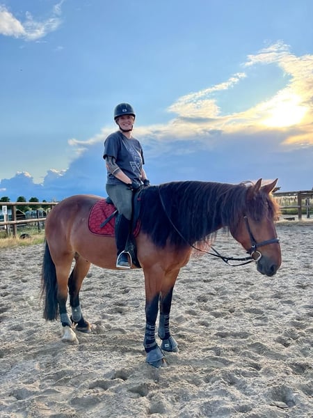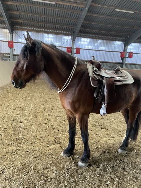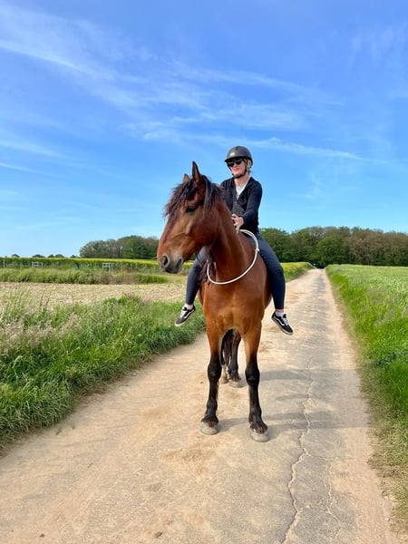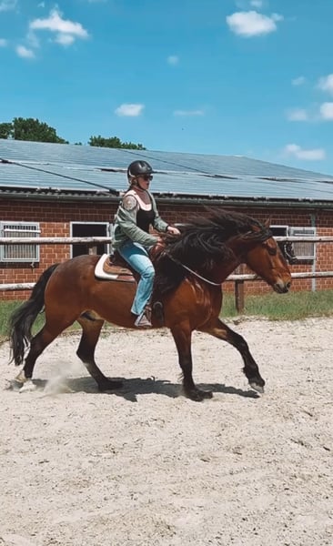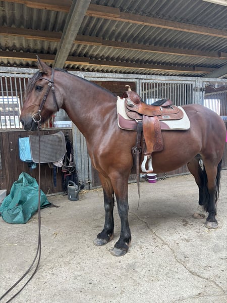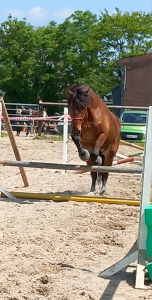 Zum Verkauf (oder zur Reitbeteiligung) steht mein 8-jähriger Barockpinto-Mix Wallach „Miro“. Miro hat ein Stockmaß von ca. 175 cm und wiegt etwa 700 kg. Er ist freizeitmäßig western geritten und überzeugt vor allem durch seinen sehr braven und unkomplizierten Charakter. Er ist geländesicher und geht auch alleine entspannt ins Gelände. Mit entsprechender Vertrauensbasis lässt er sich sogar mit Halsring reiten. Im täglichen Umgang ist Miro sehr menschenbezogen, freundlich und absolut brav. Er ist verladefromm, unkompliziert im Handling und insgesamt ein sehr angenehmer Partner. Durch eine schwere Knie-OP meinerseits wurde er in letzter Zeit leider nicht regelmäßig geritten, weshalb ich mir für ihn wieder mehr Beschäftigung wünsche. Besonderheiten / Infos: • 8 Jahre • Barockpinto-Mix • ca. 175 cm Stockmaß • ca. 700 kg Gewicht • freizeitmäßig western geritten • geländesicher (auch alleine) • Halsringreiten möglich • sehr lieb im Umgang • verladefromm • barhuf (keine Eisen) Miro steht aktuell in einem Wallachverband im Offenstall und ist sehr sozial mit anderen Pferden. Er kennt keine Boxenhaltung, daher kommt für mich ausschließlich Offenstallhaltung in Frage. Ehrlichkeitshalber: Wenn er Richtung Wiese geführt wird, möchte er manchmal etwas schneller dorthin – deshalb wird er aktuell mit Trense zur Wiese geführt. 📍 Standort: Mönchengladbach 💰 Preis: 10.000 € Alternativ Reitbeteiligung: 100 € monatlich (3x pro Woche) Mir ist wichtig, dass Miro in erfahrene, liebevolle Hände kommt. Bei ernsthaftem Interesse freue ich mich über eine Nachricht.