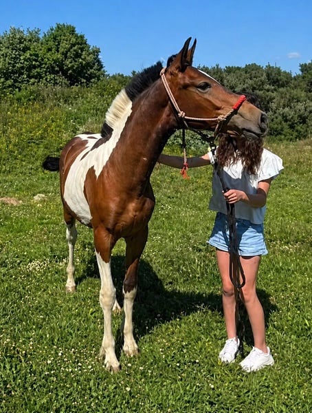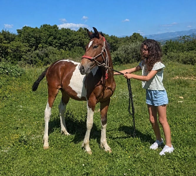 DIVO DE FINCA BARROCO A truly special BAROQUE PINTO. Bred from a small, incredibly muscular QUARTER mare, by one of our BAROQUE PINTO stallions. NO, He will definitely NOT be a lamprey eater! YES, A fantastic leisure horse and a buddy for the whole family, A DEFINITE YES!! 🥰 I can absolutely imagine him having a great career as a WORKER! …and GUARANTEED to be a butter-soft ride!! With his cool attitude—fearless, curious… How he confidently boarded and disembarked with complete strangers…😍 ...and immediately formed a bond with the just 10-year-old Laura🥰🥰. SO, THIS GUY looks after HIS PEOPLE!!😍 If you're looking for durable, strong horses with a solid foundation and a family-friendly character, then you’ve come to the right place👌 Contact us via WhatsApp at 0034 670 097 903 Your Carmen