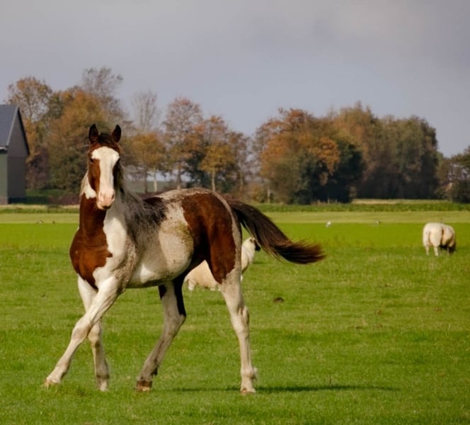 Dieser wunderschöne Barockpinto-Hengst möchte Ihr Herz erobern. Er ist dreifarbig! Braun mit schwarzen Scheckenabzeichen und wird im Frühjahr zwei Jahre alt. Seine erwartete Endstockmass beträgt ca. 1,60 m. Er ist athletisch gebaut und gleichzeitig ein wunderschönes, kräftiges Pferd. Er ist neugierig und stammt von zwei sehr liebenswerten Eltern ab (Mutter: Paint Pinto, Vater: Barockpinto). Auf den Fotos sehen Sie ihn jetzt und als Fohlen. Über uns: Wir sind das Gestüt Vrije Paarden und züchten schon seit über 40 Jahren Barockpintos, Friesen und Quarter Horses. Unsere Pferde werden so aufgezogen, wie man es sich für jedes Pferd wünscht: in einem geschlossenen Familiensystem und im Einklang mit ihrer Umwelt. Unsere Pferde leben das ganze Jahr über in großen Herden, was zu ihrem ruhigen und ausgeglichenen Wesen beiträgt. Sie können jederzeit mehrere schöne Pferde direkt von unserem Familiengestüt aus bei uns besichtigen. Unsere Pferde sind noch komplett roh, Sie können das Pferd alles genau so lernen wie Sie das möchten. Die Pferde sind gechipt und haben einen Pferdepass. Wir sprechen Deutsch, Niederländisch, Englisch und Friesisch. Sie können uns gerne nach Vereinbarung besuchen, damit wir uns ausreichend Zeit für Sie nehmen können. Der Kaffee steht bereit. Wir freuen uns darauf, Ihnen bei der Suche nach Ihrem zukünftigen Traumpferd behilflich zu sein! Bei Interesse rufen Sie uns an oder schreiben Sie uns eine WhatsApp-Nachricht. Erfüllen Sie sich Ihren Traum bei Familiengestüt Vrijepaarden!