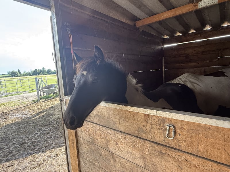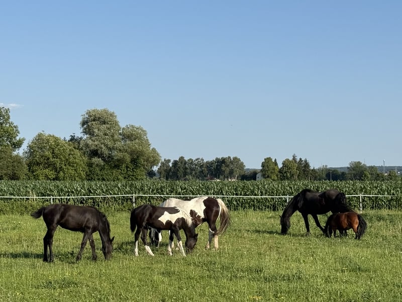 **Verkaufsanzeige: Barockpinto Hengst** Zum Verkauf steht ein wunderschöner Barockpinto Hengst, geboren im Jahr 2025. Mit einem ungefähren End-Stockmaß von 155-160 cm ist er der ideale Freizeitpartner für Pferdefreunde, die Wert auf ein einzigartiges Erscheinungsbild und ein sanftes Wesen legen. Dieser charmante Schecke überzeugt nicht nur durch seine auffällige Färbung, sondern auch durch sein ausgeglichenes Temperament. Er eignet sich hervorragend für entspannte Ausritte und vielseitige Freizeitaktivitäten. Der Hengst ist gut sozialisiert und hat einen freundlichen Charakter, der ihn zu einem angenehmen Begleiter macht. Er hat bereits erste Erfahrungen im Umgang mit Menschen gesammelt und zeigt sich stets kooperativ. Wenn Sie auf der Suche nach einem besonderen Pferd sind, das Ihnen viele unvergessliche Momente in der Freizeit bescheren kann, dann ist dieser Barockpinto genau das Richtige für Sie! Er wurde geimpft, besitzt den grünen Pferdepass und war regelmäßig beim Hufschmied! Sein Vater ist ein stolzer und edler Friese der von Jehannes 484 abstammt. Seine Mama ist eine Scheckstute. Für weitere Informationen oder zur Vereinbarung eines Besichtigungstermins kontaktieren Sie mich bitte.