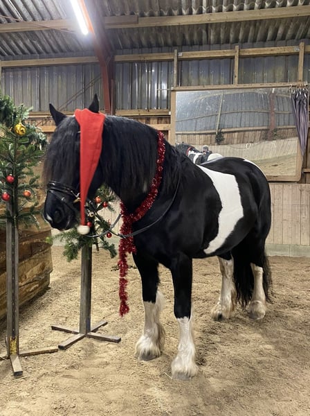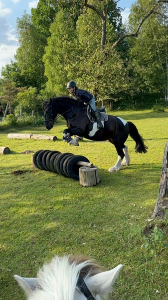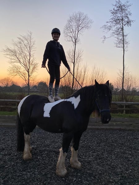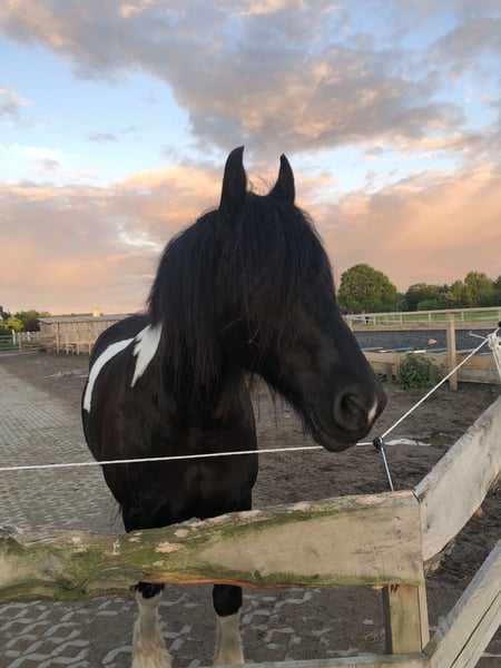 Ella, born in 2015, is a stunning, typified German Pinto Baroque mare (height approx. 1.68 m) with a foal premium, who captivates immediately with her special expression and presence. Ella came to us already started under saddle and has been further developed over the past four years with a lot of patience and love. In daily training, she works reliably, responds sensitively to correct aids, and enjoys gymnastic exercises such as leg yielding, shoulder-in, and light travers. She loves going out on trails – both alone and in groups – and shows real enthusiasm for jumping. Ella is a horse that thrives with a clear, consistent handler. She feels less comfortable with changes in riders, which is why we are looking for an experienced rider who can provide her with security, structure, and fair guidance. She is not suitable for beginners. 👉 Care & Health: Ella currently lives in a paddock, but is also familiar with box housing. She is barefoot and has been regularly seen by the farrier, veterinarian, osteopath, and saddler. Vaccinations and deworming are up to date. With her foal premium and her typified appearance, Ella is also of interest to breeders. Equipment can also be purchased if needed.