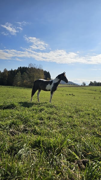 Zur verkauf steht mein geliebte 1 Jahr und 6 Monate alte Pinto Stute Oshana. Sie liebt kuscheln und knuddeln und ist ein sehr offenes Pferd. Allerdings auch sehr Lebensfreudig. Da sie noch sehr jung ist hüpft sie gern herum und testet gerne ihre Grenzen. Aus kosten Gründen muss ich mich leider schweren Herzens verabschieden. Sie lässt sich aufhalftern, ist barhuf und kennt den Hufschmied und ist auch an das Führen gewohnt. Jeglicher Zubehör kann mitgenommen werden wie Decke, Futter, Halfter etc.