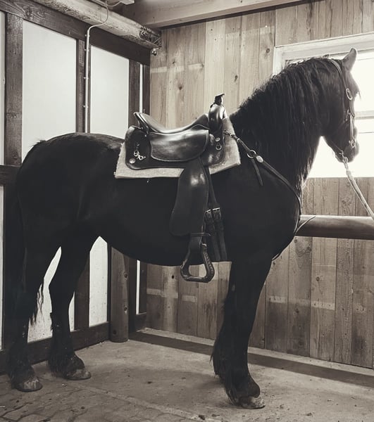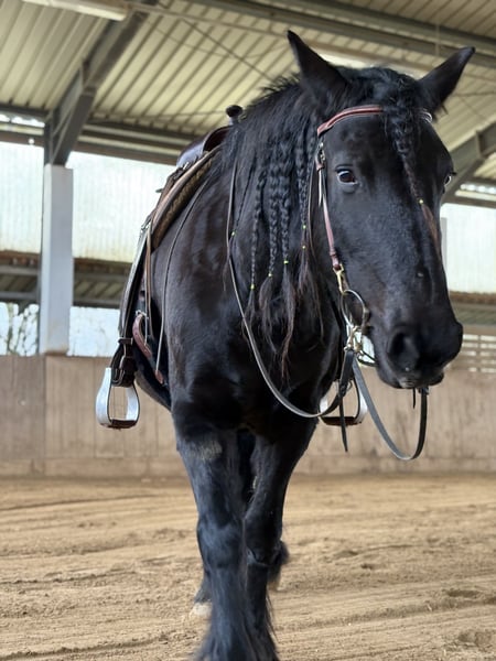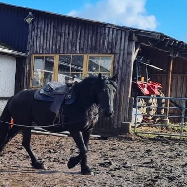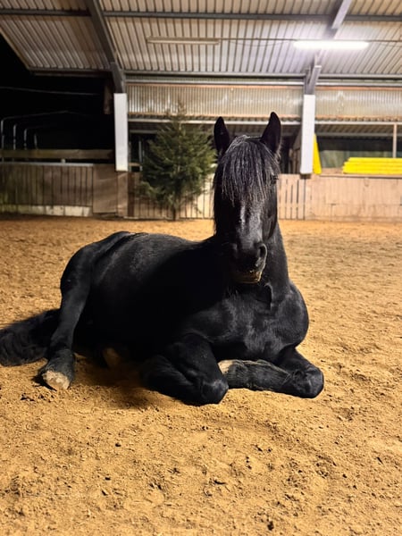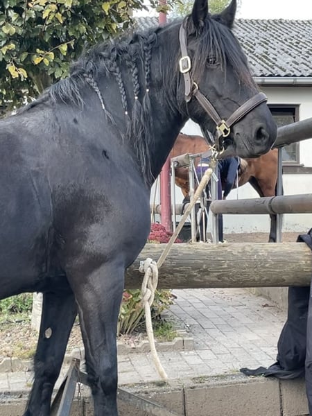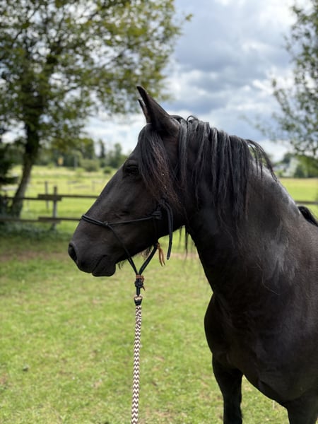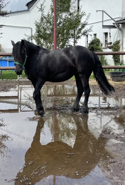 Barockpinto-Stute – charakterstark, gesund und vielseitig Zum Verkauf steht eine bildschöne Barockpinto-Stute im edlen Rappkleid. Sie ist 8 Jahre alt, ca. 1,55 m groß und stammt aus erster Hand. Ihr Vater ist ein Friese, die Mutter ein Irish Cob – eine spannende und robuste Mischung, die sich sowohl für den Freizeitbereich als auch für die Zucht eignet. Sie besitzt volles Papier und einen Gentest auf Cremello. Gesundheit & Haltung: Die Stute war bisher kerngesund, keine Mauke, kein Ekzem, keine bekannten Mängel. Eine Ankaufsuntersuchung kann selbstverständlich vom Käufer durchgeführt werden. Sie wurde noch nie beschlagen und läuft zuverlässig barfuß – auch im Gelände. Ausbildung & Reiteigenschaften: Mit 4 Jahren schonend angeritten, anschließend Pause, mit 5 Jahren weiter gefördert und seither immer wieder gearbeitet – aktuell steht sie seit etwa 4 Monaten. Im Gelände zeigt sie ein schönes, schwungvolles Go, auf dem Platz ist sie motivierbar, wenn auch etwas gemütlicher. Sie ist fein im Maul, lässt sich auch gebisslos reiten und hat unter dem Reiter noch nie gebockt. Charakter & Umgang: Diese Stute ist absolut gutmütig, offen und verschmust. Sie kennt Kinder, Hunde, Esel und Rinder und zeigt sich stets freundlich und nervenstark. Auch für Familien mit Reiteinsteigern oder als Freizeitpartnerin ideal. Preis: 8.500 € VB Besichtigung & Probereiten: Nach Terminabsprache möglich – eine Reithalle steht zur Verfügung. Zur Vermeidung von „Probereittourismus“ wird eine Gebühr von 30 € erhoben, die beim Kauf selbstverständlich verrechnet wird. Eine tolle Partnerin für Menschen, die ein verlässliches, charakterstarkes Pferd suchen.