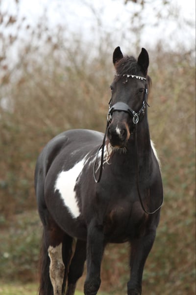✨ Barock Pinto merrie (8 jaar oud, 2017)✨ Haribo is een mooie, lieve en eerlijke merrie. Ze is PSSM-vrij en ook zeer geschikt voor de fokkerij. Haribo is opgeleid in het werken aan de hand, grondwerk en dubbele lijnen. Ze is ingereden en mee op buitenrit geweest, maar onder het zadel nog wat onervaren. Ze is gevoelig, leergierig en heeft zichtbaar plezier in het werken in zijgangen. In haar werk heeft ze baat bij rust, duidelijkheid en een zelfverzekerde, consequente begeleider die haar vertrouwen kan geven. Altijd netjes onderhouden: ✔ Afgelopen 1,5 jaar elke 3 maanden behandeld door de dierenarts (osteopathie, acupunctuur, cranio sacraal) ✔ Elke 6 weken bekapt door hoefspecialist ✔ Tandarts en vaccinaties op orde ✔ Gevaccineerd tegen West Nijl Ze mag nu naar een fijne plek waar ze verder mag groeien❤️ Vp: 8000 📩 Stuur gerust een bericht voor meer info