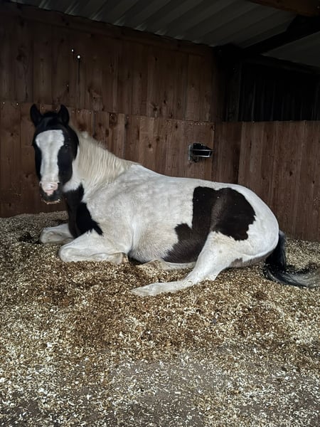 Ruhiger und lieber Pinto-Paint Mix Wallach als Beisteller oder Kutschpferd „BumbleBee“ ist ein 13-jähriger, hübscher Pinto / Paint Schecke, der von uns Ende 2024 als angerittenes Anfängerpferd für die weitere Ausbildung gekauft wurde. Unterm Sattel zeigt er sich aber nun bei Schenkeldruck nicht kooperativ, verschließt sich und stellt jede Zusammenarbeit ein. Es folgen dann auch Beißversuche und ggf. Buckeln. Vermutlich hat BumbleBee in seiner Vergangenheit leider sehr schlechte Erfahrungen machen müssen, die uns beim Ankauf verschwiegen wurden. Nach fachlicher Einschätzung wird dieses Verhalten bei BumbleBee nur durch einen Profi auf Dauer händelbar sein. Daher wird BumbleBee ausdrücklich als nicht reitbar angeboten. Im Zuge des Aufklärungsversuches der "Druckempfindlichkeit" konnten Magenprobleme (durch Gastroskopie) und Rückenbeschwerden (durch Röntgenbilder) ausgeschlossen werden. BumbleBee wurde von uns nach pro-ride Horsemanship / Thomas Günter auf dem Boden ausgebildet und desensibilisiert. Arbeit mit der Longe sowie die Freiarbeit kennt er. Er ist neugierig und unerschrocken. Entsprechend entspannt ist er auch gerne im Gelände unterwegs. Grundsätzlich ist BumbleBee ein sehr menschenbezogener, netter und freundlicher Freizeitpartner mit einem großen Herz, der gerne auf dem Boden arbeitet. Dabei ist er total unkompliziert. Er ist ein verlässlicher Begleiter im Gelände; am Boden. Da er im Gelände sehr sicher und unerschrocken unterwegs ist, wäre auch eine Nutzung als Kutschpferd denkbar. Wir haben bei uns leider keine Möglichkeit, das auszuprobieren. BumbleBee ist rangniedrig und gegenüber seinen Artgenossen freundlich und neugierig. Aktuell steht BumbleBee in einer Box mit Außenpaddock. Er kennt aber auch den Offenstall. Das Stockmaß von BumbleBee ist etwa 1,58 m. Er besitzt einen spanischen Equidenpass, wurde regelmäßig geimpft (Influenza, Herpes, Tetanus), entwurmt und wird als Barhufer alle 4 Wochen dem Huforthopäden vorgestellt; dort ist er absolut schmiedefromm. Eine jährliche Zahnkontrolle (zuletzt 11/2025) erfolgte ebenfalls. Den Tierarzt empfängt er stets entspannt. Unterjährig hat er temporär (Pollensaison) Atemwegsprobleme mit Husten und bekommt bei uns daher gewässertes Heu. Aktuell ist er beschwerdefrei. Wir wünschen uns für BumbleBee ein neues Sterne-Zuhause, wo man Spaß an der Bodenarbeit hat, oder aber wo er als Handpferd, oder zu Fuß mit seinem Menschen draußen unterwegs sein kann. Detailfragen können gerne auch telefonisch besprochen werden; dann bitte eine Telefonnummer angeben, unter der wir zurückrufen können.