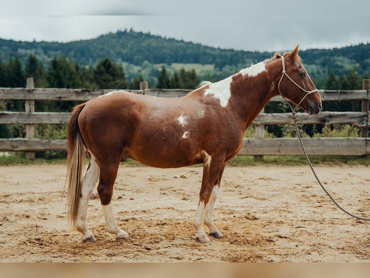Luke is a very patient and well-trained Paint cross gelding. He is easy to ride even for younger children and nervous adults, both in the indoor arena and on the riding yard. We ride him bitless with a bosal. Luke is suitable for therapeutic riding or as a family horse. When hacking out, he tends to be a bit more lively. Therefore, we see Luke as a lead-rein pony for children or for guided walks. We are selling him due to a reduction in our herd. He wears egg bars on his hind legs due to mild interference.