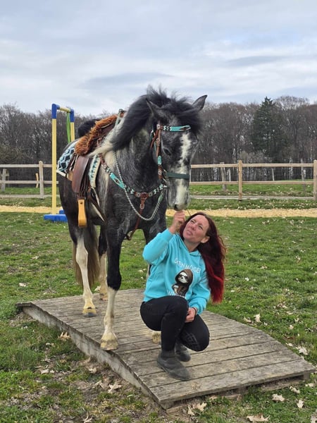 Vente d'étalon pie (gelding) – doux, sociable et curieux d'apprendre Âge : 4 ans (né en 2022) Taille : environ 1,57 m Prix : 6 500 € AKU : disponible ✨ Description : Un magnifique étalon pie avec un tempérament très amical et ouvert. Il se montre sage, proche de l’humain et particulièrement câlin dans le quotidien. En tant que jeune gelding, il est curieux, attentif et toujours agréable à manipuler. Il a déjà été monté en selle et souhaite plaire à son cavalier. Il travaille avec motivation, montre une grande envie d’apprendre et adopte une attitude positive envers le travail. Malgré son jeune âge, il est facile à gérer. Un jeune partenaire prêt à découvrir le monde avec son humain. Idéal pour : Cavalier(e)s recherchant un jeune gelding amical, sincère et motivé. Adapté pour le loisir, la formation continue et une utilisation polyvalente. Parfait pour les personnes qui aiment continuer à faire progresser un jeune cheval. Nos chevaux sont régulièrement : – vermifugés – suivis par le maréchal-ferrant – contrôlés osteopathiquement Écurie boutique : selles western, bridons & accessoires Transport et équipement organisés à prix avantageux sur demande Notre service : ✅ Droit d’échange de 3 mois ✅ Essai : 35 €, chaque cheval supplémentaire 25 € (déduit lors de l’achat le même jour) ✅ Remise immédiate de 100 € lors de la récupération ou du transport le jour même ✅ Conseil personnalisé et honnête Pour toute demande, veuillez uniquement nous contacter par téléphone : 0171 – 4001968 Disponible tous les jours de 8h à 20h ⚠️ Pas de mail ni WhatsApp ⚠️ Toutes les informations sont données sans garantie