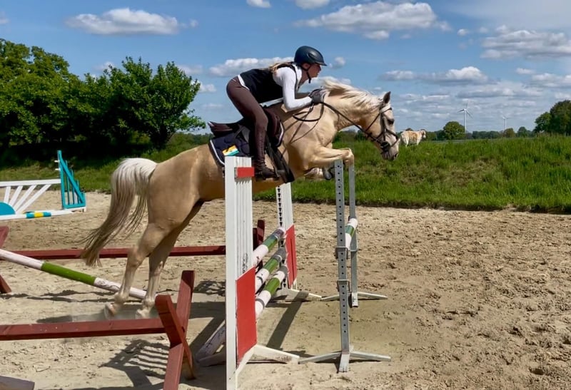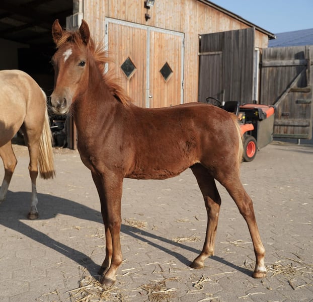 **Anuncio de venta: Poni de Montura Alemán macho** Se vende un prometedor Poni de Montura Alemán macho, nacido en marzo de 2025. Con su llamativo pelaje castaño y una altura estimada de 145-148 cm, es un verdadero atractivo. Oscar seguramente será un gran compañero. Lo vemos apto para cualquier disciplina ecuestre. La genética de su madre hace esperar que Oscar pueda convertirse en un poni de montura versátil. Los tres hermanos completos (un semental aprobado, Tarantino CK) ya están en camino hacia el deporte de salto. Su madre, Texas Star, aporta muy buenos y elásticos aires básicos, así como un excelente salto libre. Proviene de dos grandes sementales, su padre The Breas my Mobility y su madre Stakkato. El padre, Oscador, está al principio de su carrera. Un semental Lewitzer extraordinariamente amable y sobre todo guapo. Actualmente está registrado en el libro de sementales II del ZfdP y se prevé que sea presentado para la aprobación después de la próxima temporada de cría. Un encuentro personal es, por supuesto, posible en cualquier momento. Si está interesado o tiene más preguntas, no dude en ponerse en contacto conmigo.