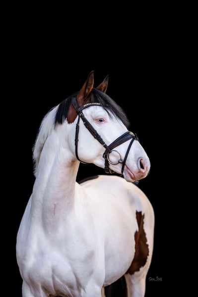 Mescalino ist ein fünfjähriger Pinto-Hengst, der mit Leistung, Exterieur und Charakter gleichermaßen überzeugt. Bereits als Fohlen prämiert, wurde er später Rassesieger beim Landeschampionat in Bad Segeberg. Auch bei seiner Körung beim Mecklenburger Verband beeindruckte er mit überdurchschnittlicher Freispringqualität (Note 8,5). Seine Hengstleistungsprüfung absolvierte Mescalino dreijährig mit einer Gesamtbewertung von 7,88 und wurde als Leistungshengst ausgezeichnet. Besonders hervorgehoben wurden seine Umgänglichkeit, hohe Lern- und Leistungsbereitschaft sowie seine ausgeprägte Rittigkeit (Noten bis 9,0). Die Grundgangarten wurden mit bis zu 8,0 bewertet. Bereits vierjährig konnte sich Mescalino altersgerecht in Springpferdeprüfungen platzieren. Für die Turniersaison 2026 ist eine gezielte weitere sportliche Förderung vorgesehen. Abstammung: Vater: Elite- und Leistungshengst Mescalero, gezogen über Mangold N – Sando Paso N – Bajar, aus dem erfolgreichsten Pintostamm Schleswig-Holsteins. Mescalero stellte mehrere gekörte Hengste, Siegerstuten, Championatsfohlen sowie erfolgreiche Sportpferde bis zur Klasse M. Zu seinen jüngsten Zuchterfolgen zählt die Landeschampioness 2024 Sölrings Tami, gezogen aus einer Holsteiner Stute. Mutter: Calabria (v. Consens – Cassini I), Holsteiner Bezirksprämienstute, selbst erfolgreich im Springsport bis Klasse S und als Leistungsstute ausgezeichnet. Der direkte Mutterstamm brachte zahlreiche Sportpferde bis Klasse S sowie gekörte Hengste wie Cocosinni, Light Up E und Vaquero E hervor. Zuchteinsatz: Mescalino eignet sich hervorragend für die deutsche Reitpony- und Warmblutzucht. Er vereint leistungsgeprüfte Genetik, gute Grundgangarten, ausgeprägtes Springvermögen sowie einen ausgeglichenen, leistungsbereiten Charakter. Damit bietet er beste Voraussetzungen für eine sportlich orientierte Zucht – kombiniert mit begehrter Farbvererbung. Die ersten Fohlen werden im Frühjahr 2026 erwartet. Zulassung: Mecklenburger Verband Zuchtverband für deutsche Pferde Pferdestammbuch Schleswig-Holstein (weitere Verbände auf Anfrage) Zuchtbuch: HB I Pinto, Kleines Deutsches Reitpferd & Deutsches Reitpony