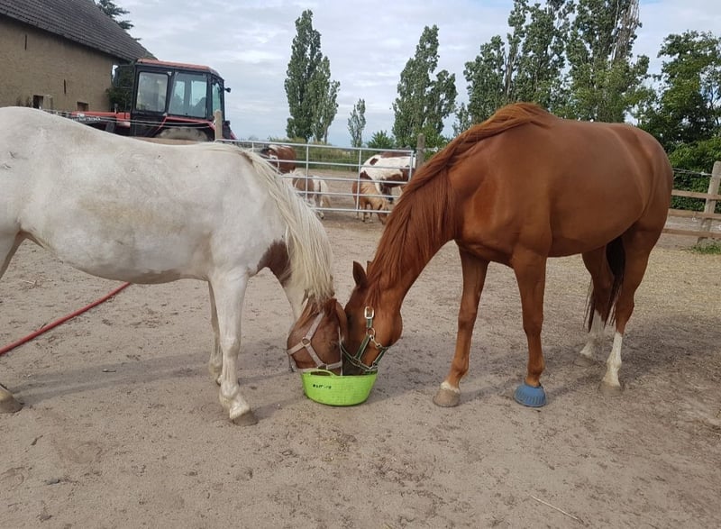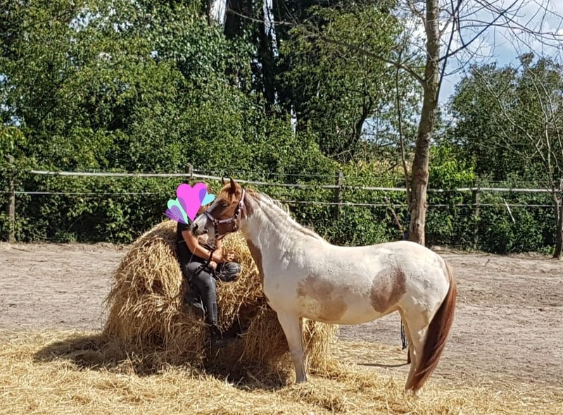 Hallo, ik ben Pauline Blue Eyes. Ik word Xanti genoemd. Ik ben een ongeveer 1,33 m grote Pinto merrie, geboren in 2015 en dus 10 jaar oud, en een vos met een bonttekening. Ik ken de stal, maar sta in een gemengde kudde in een buitenstal en dat moet zo blijven. Het maakt me niet uit of ik met Shetlanders of grote paarden ben, ik ben eerder ondergeschikt en pas me overal aan. Ik zoek mijn mens, met tijd en geduld voor mij. Soms heb ik namelijk de typische pony-sturheid en wil ik liever mijn eigen ding doen. Op andere dagen ben ik heel lief en laat ik me longeren en in stap, draf en galop rijden. Bij het springen heb ik eigenlijk altijd plezier. Omdat er hier weinig tijd voor mij is en ik eigenlijk regelmatig training nodig heb, met doorzettingsvermogen en toch veel rust en liefde, heeft mijn familie met pijn in het hart besloten een nieuw, paardervaren thuis voor mij te vinden, waar ik de aandacht krijg die ik zoek en nodig heb. De hoefsmid is geen probleem (blote voeten), ik vind het leuk om geborsteld te worden en ga vrijwillig de trailer in. Hier heb ik 24 uur hooi en in de zomer weide. Het leiden aan de weg, tractoren, vrachtwagens en motorfietsen zijn voor mij geen probleem. Over het algemeen ben ik vrij onverschrokken en ga ik overal in en door. Daarom heb ik ook een goed omheinde paddock en een weiland met stroom nodig. Dat zou eigenlijk algemeen zo moeten zijn. Maar ik zeg het liever nog een keer. Bij verdere vragen kunt u gerust contact opnemen met mijn familie op 0172 53 63 327. Ik kijk ernaar uit jullie te ontmoeten!